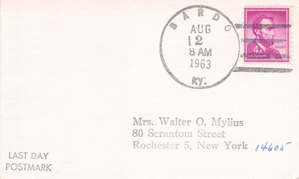 Bardo (1928-1963) 1963 4-bar on 3x5 card