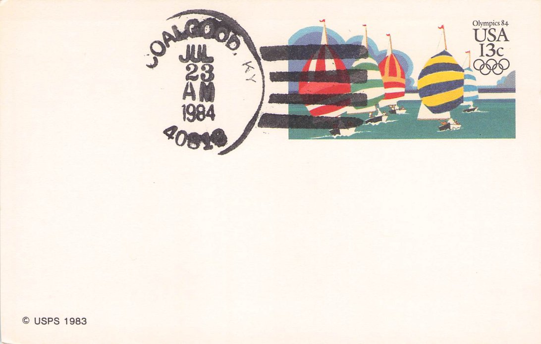 Coalgood 1984 4-bar on Postal Card