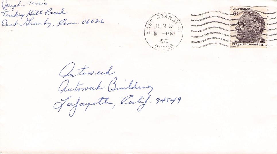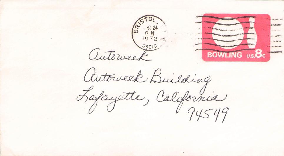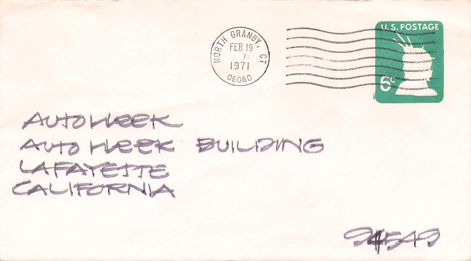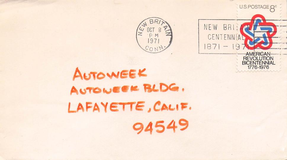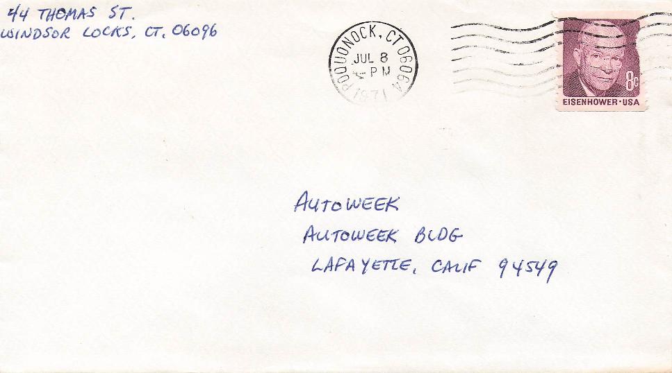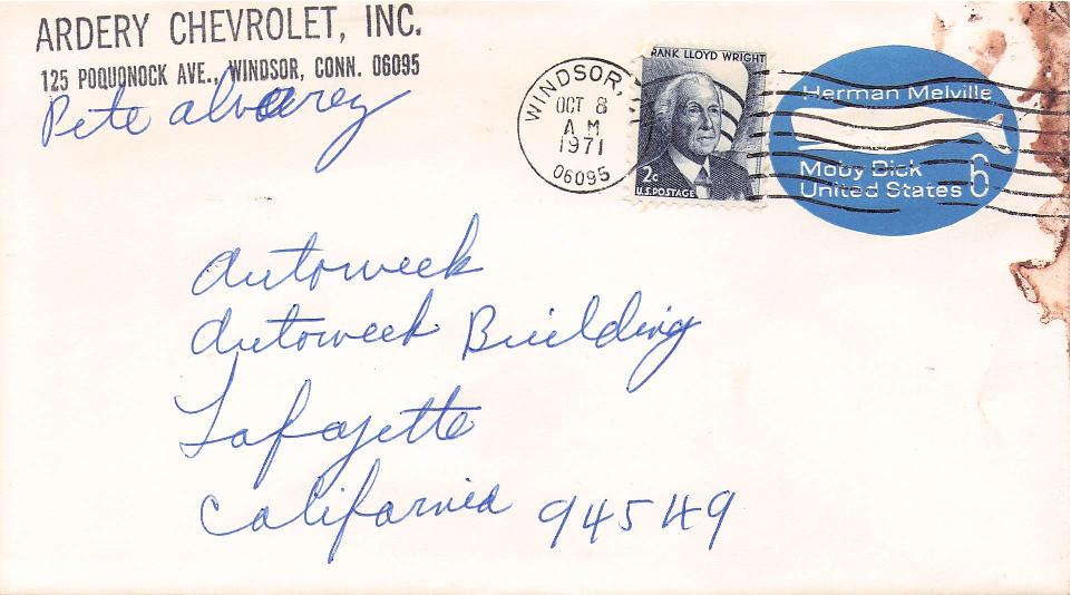 Windsor 1971 machine cancel on cover, Ardery Chevrolet corner.