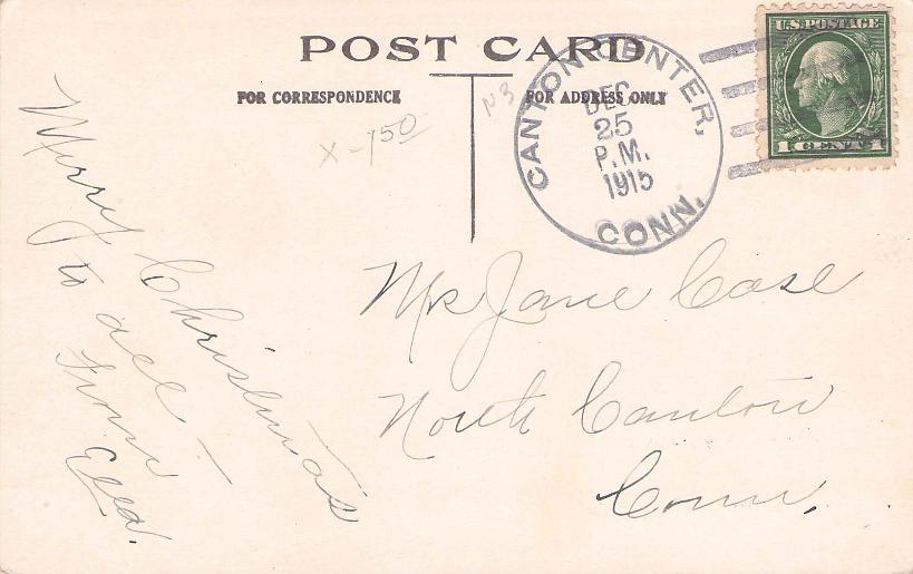 Canton Center c.1880 unreadable cancel on cover, “Benj. F. Case, Maplewood Farm” corner; 1915 4-bar on post card