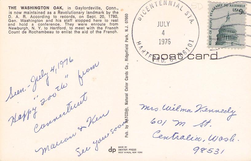 Bicentennial Sta. July 4, 1976 special postmark on post card
