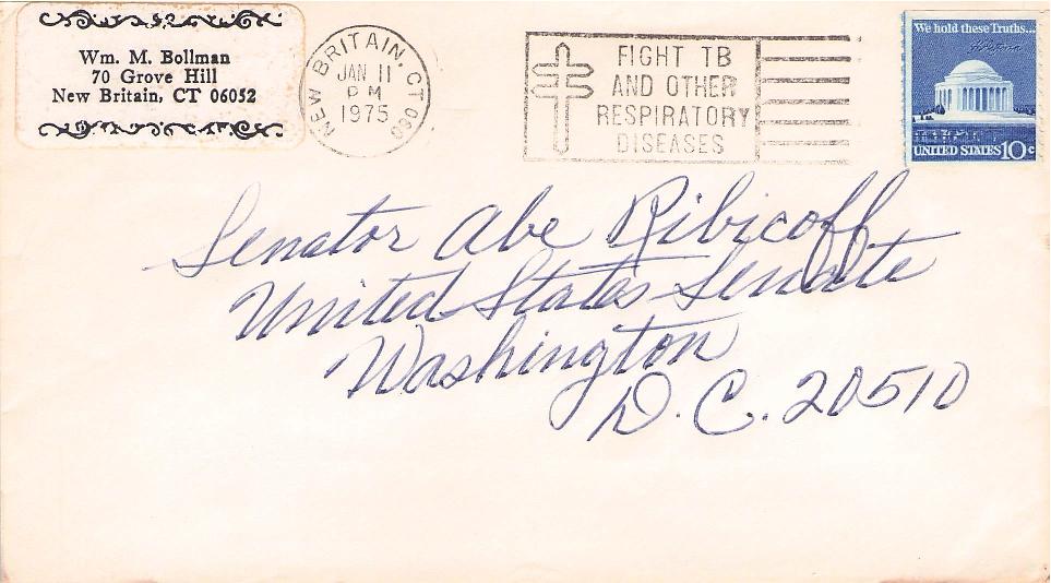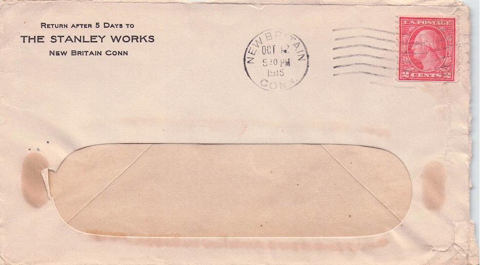 New Britain 1915 machine cancel on cover, “The Stanley Works” corner; 1971 machine slogan “New Britain Centennial 1871-1971” on cover; 1975 machine slogan “Fight TB and other Respiratory Diseases” on cover.