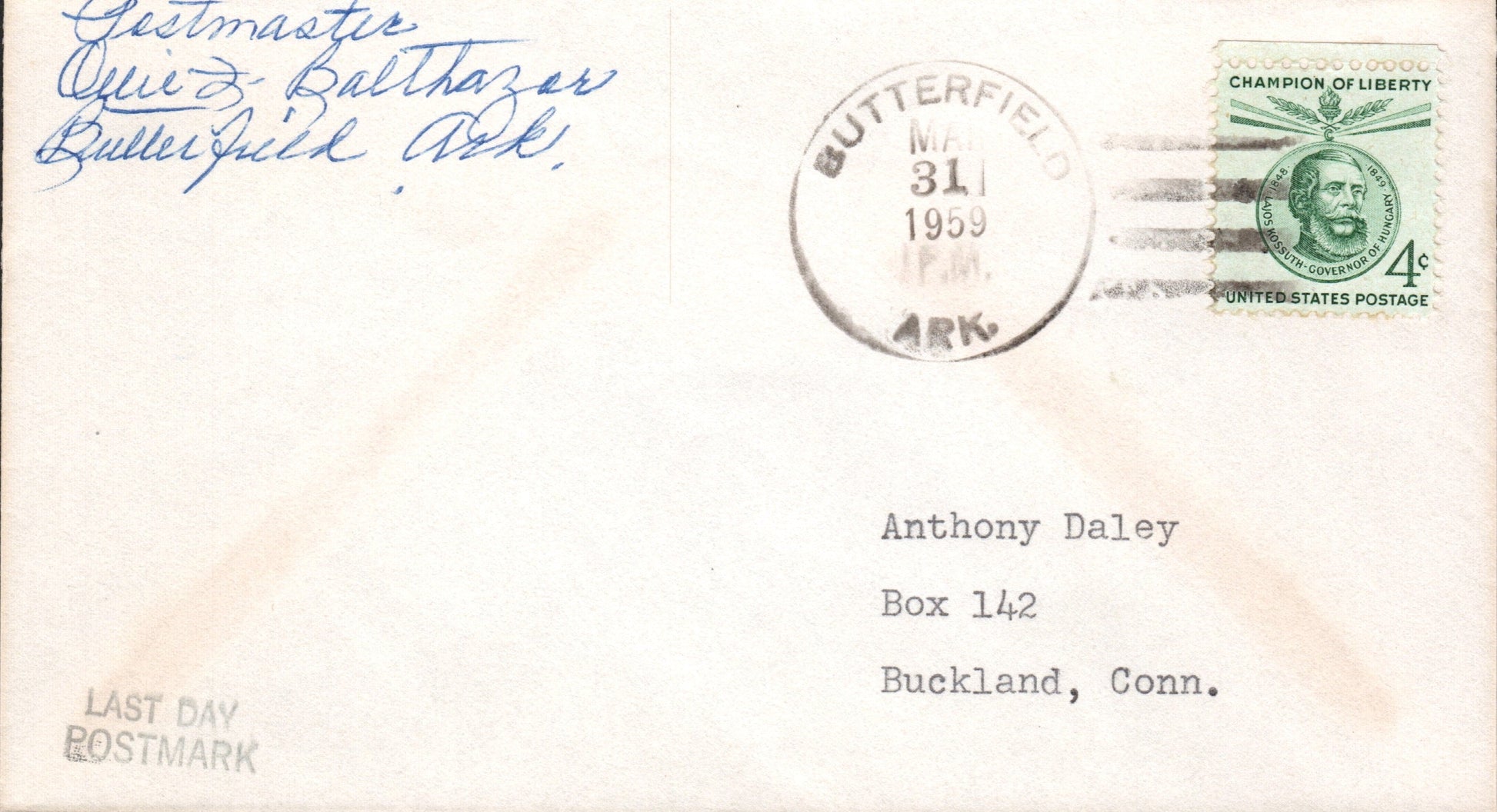 - Butterfield (1891-1951) 1959 4-bar on LD cover, PM autograph