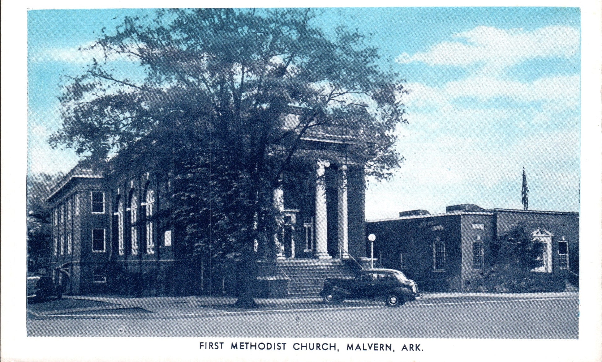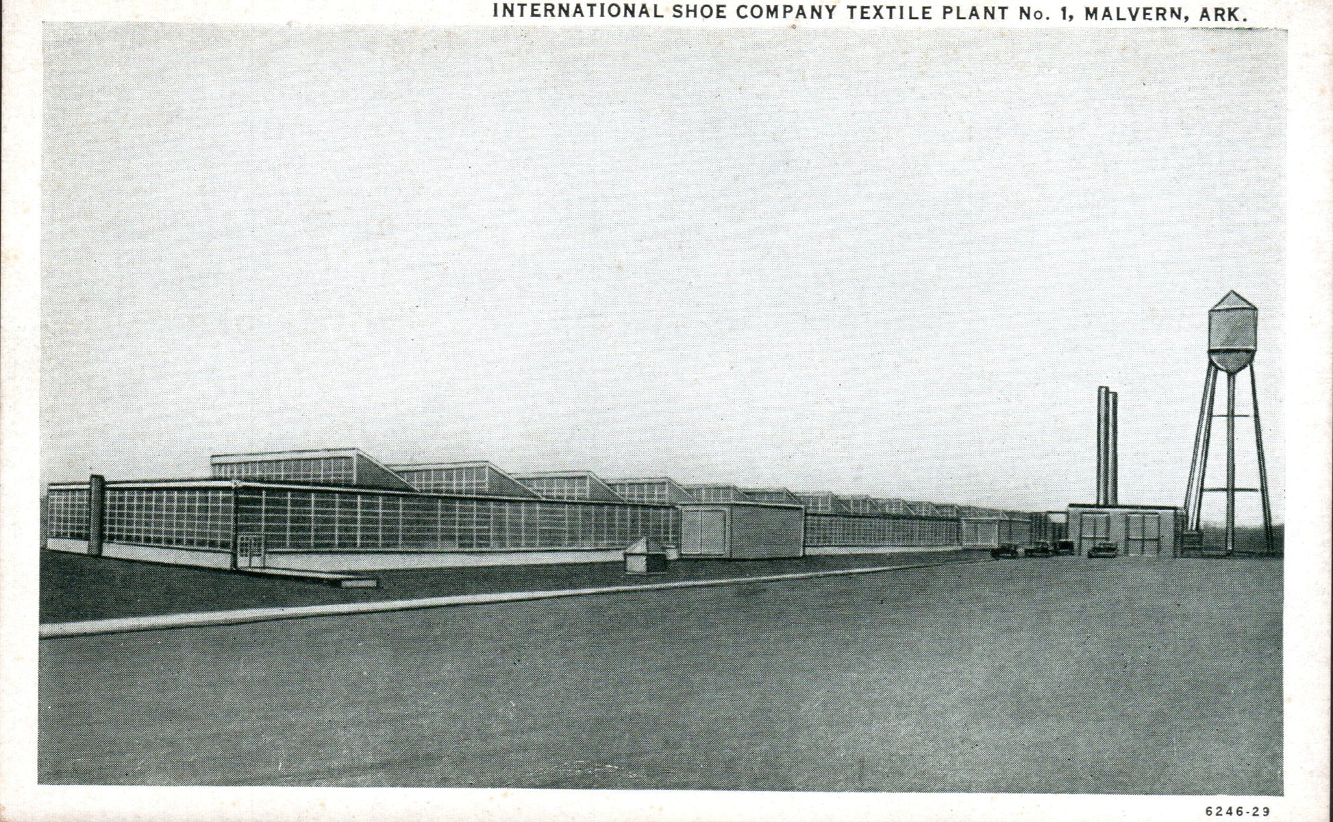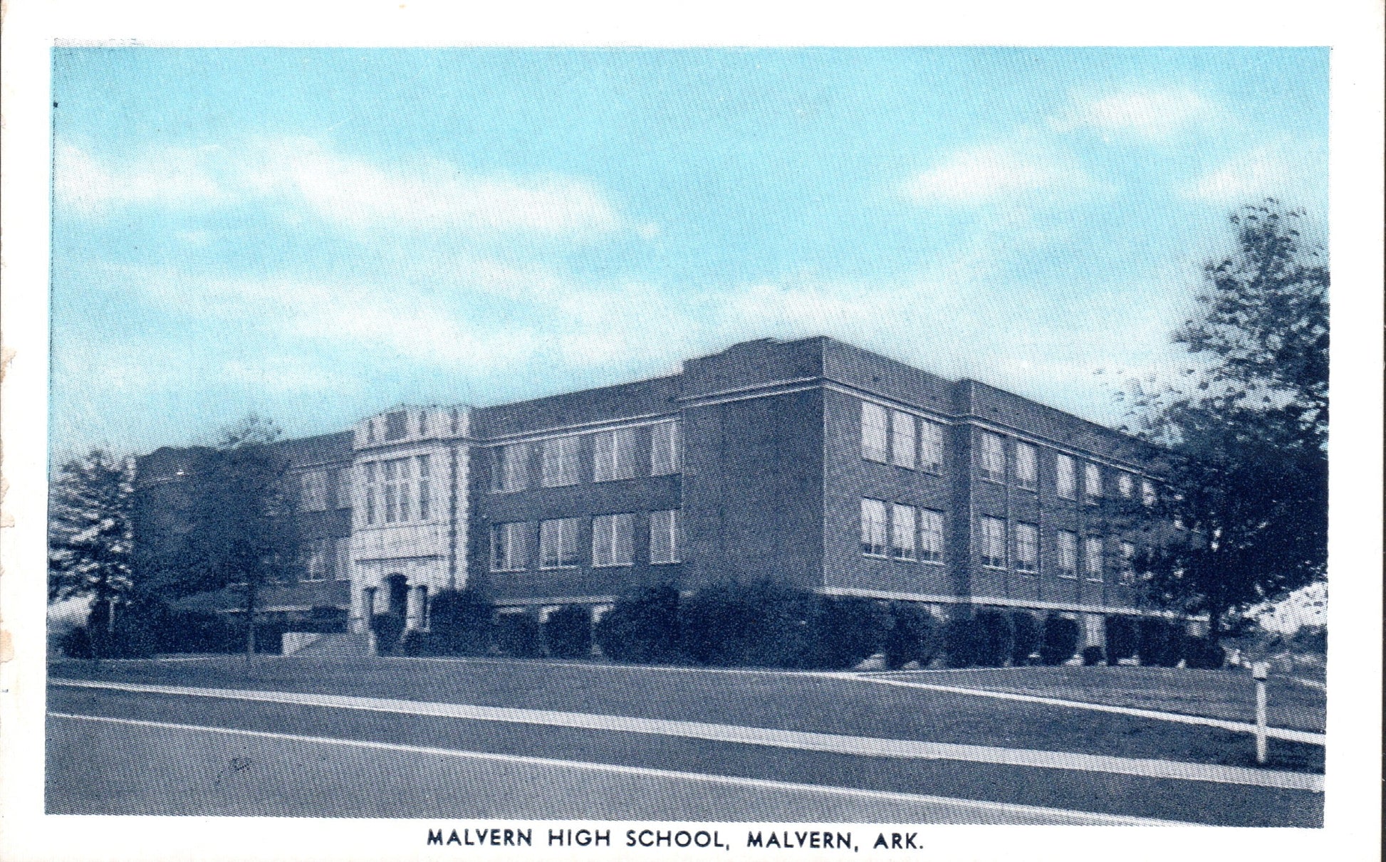 - Malvern Post cards: Malvern Motel [1956]; The following cards are B&W with sky colored blue: International Shoe Co. Textile Plant [2 views, one of the same series but no blue sky]; City Hall; Public Library; Malvern High School; First Methodist Church