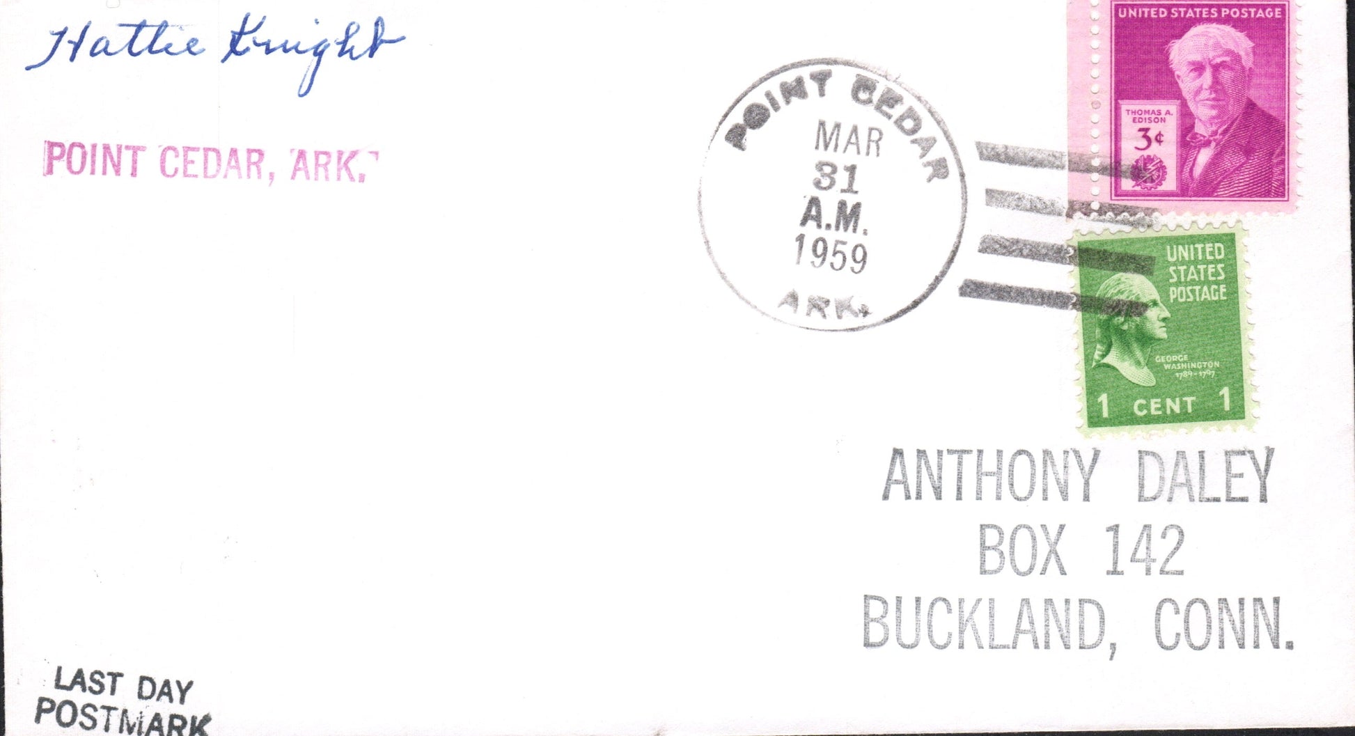 - Point Cedar (1852-1959) 1959 4-bar on LD cover-sized card, PM autograph