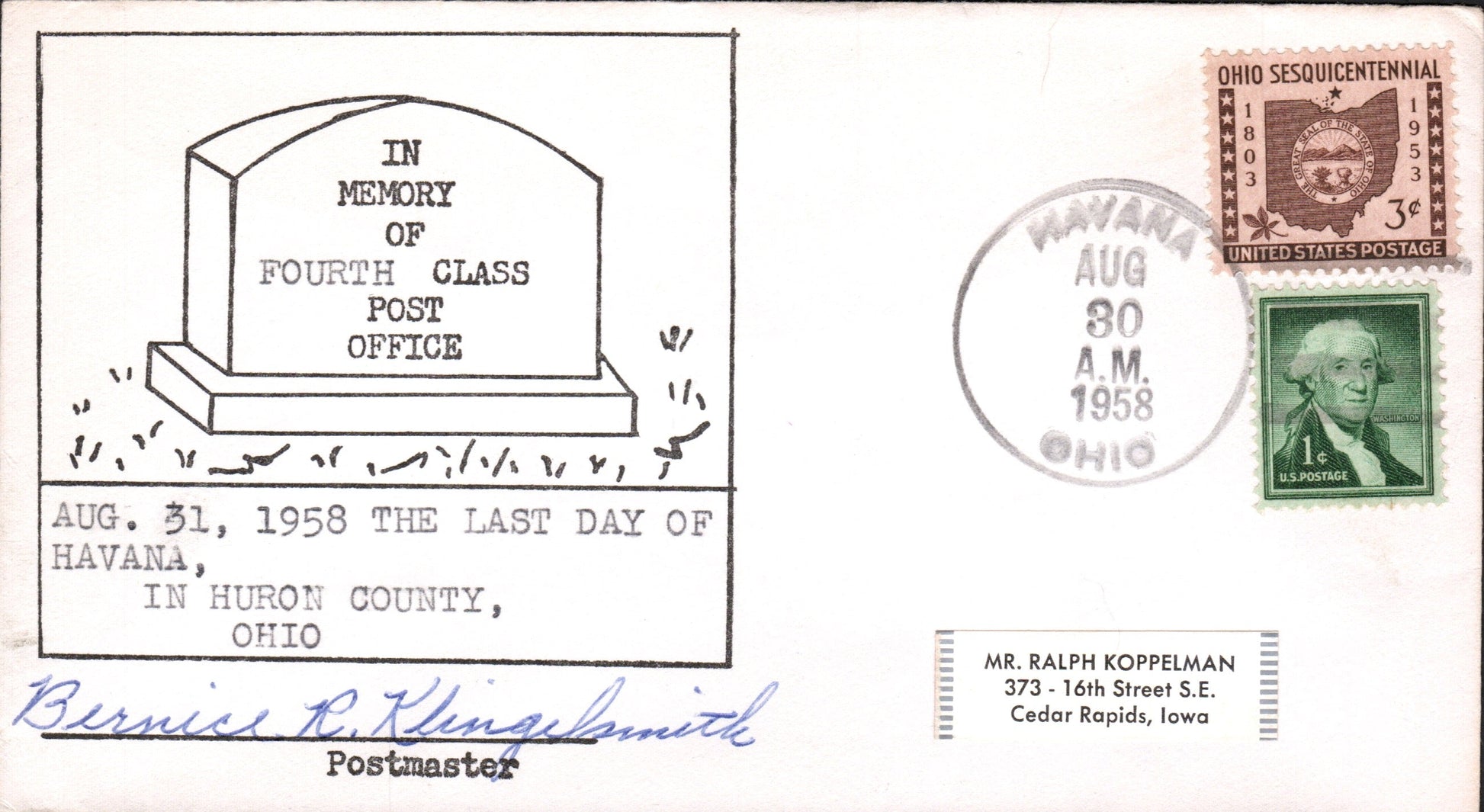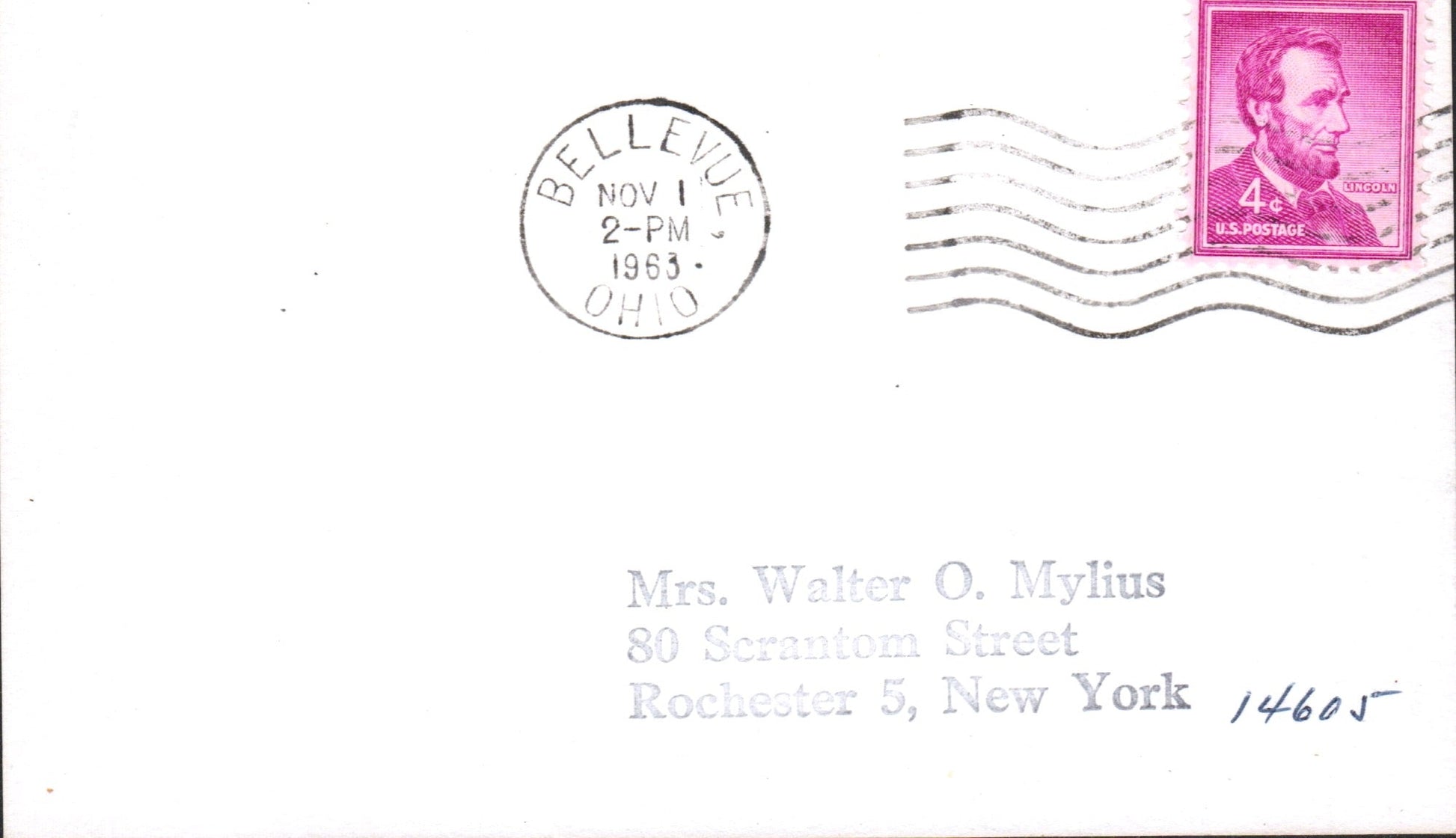 Bellevue 1963 machine cancel on 3x5 card, PM autograph on back.