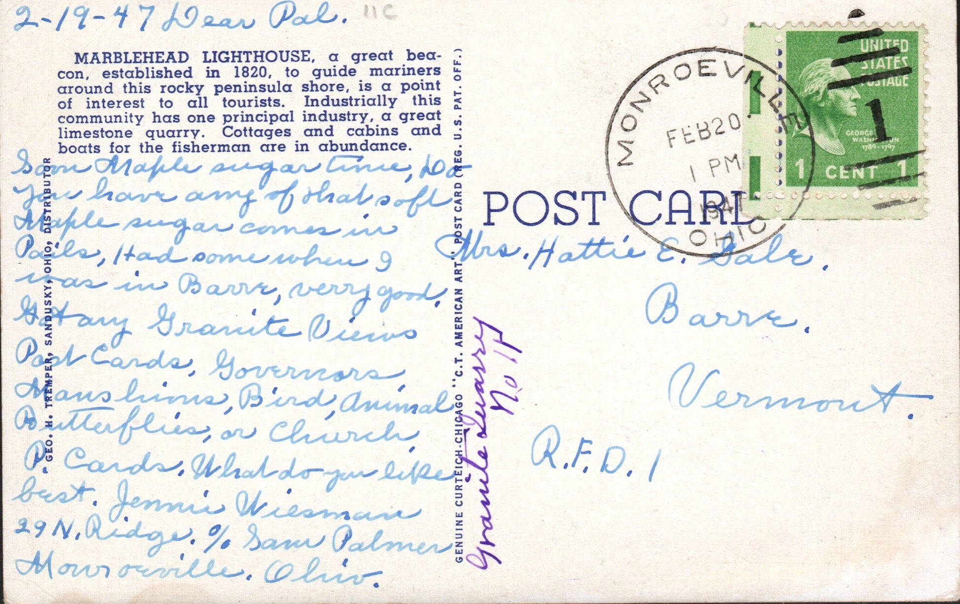 Monroeville 1947 duplex on post card