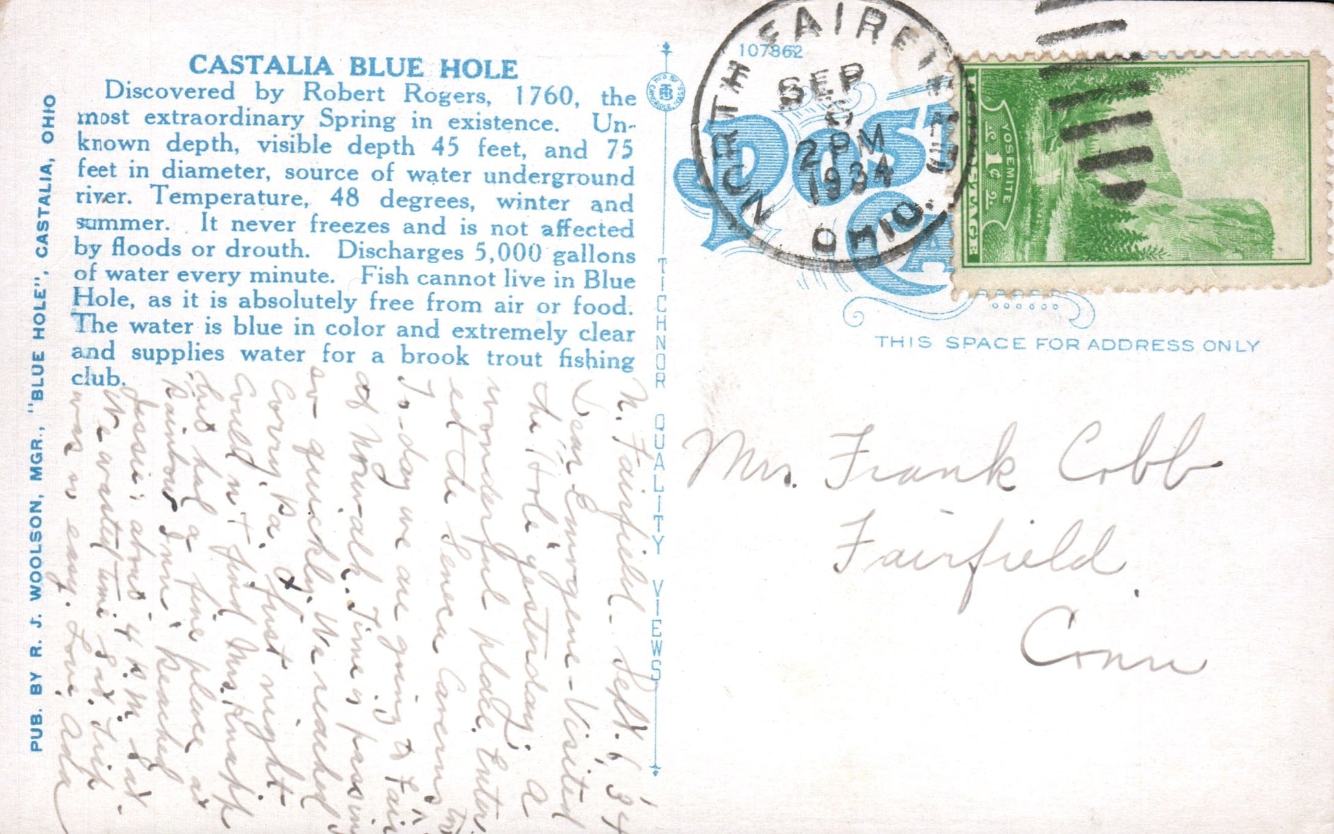 Post cards: “Public Library [c.1910]; “New Subway and Main Street” [linen]; Seneca Caverns (chrome)