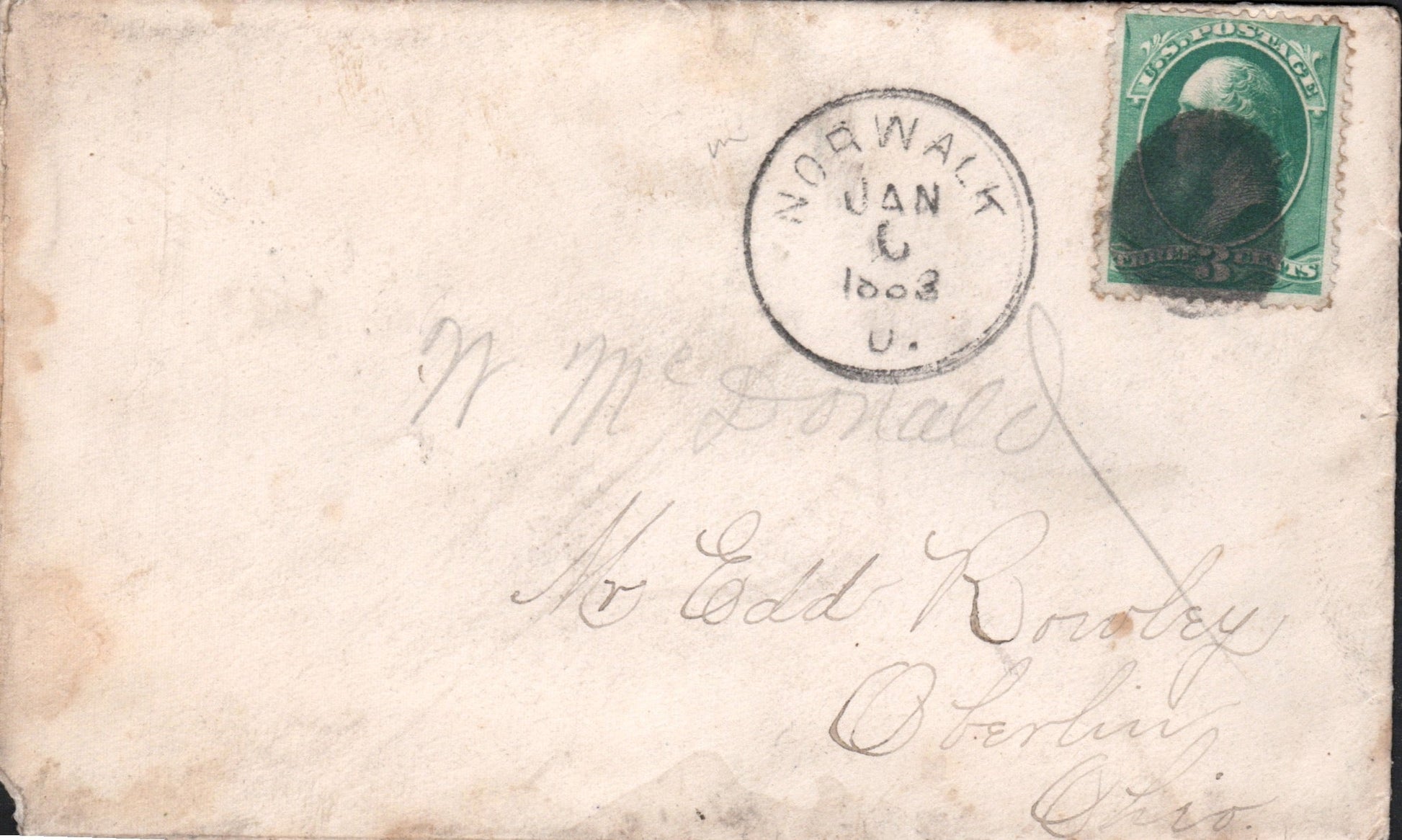 Norwalk 1883 cds & cork killer on cover with original contents.