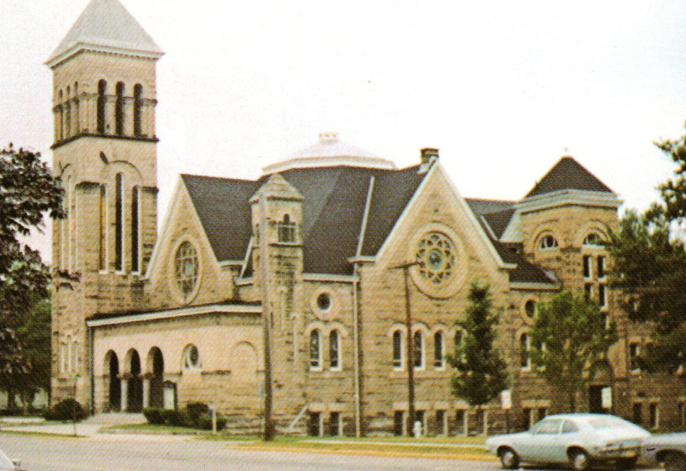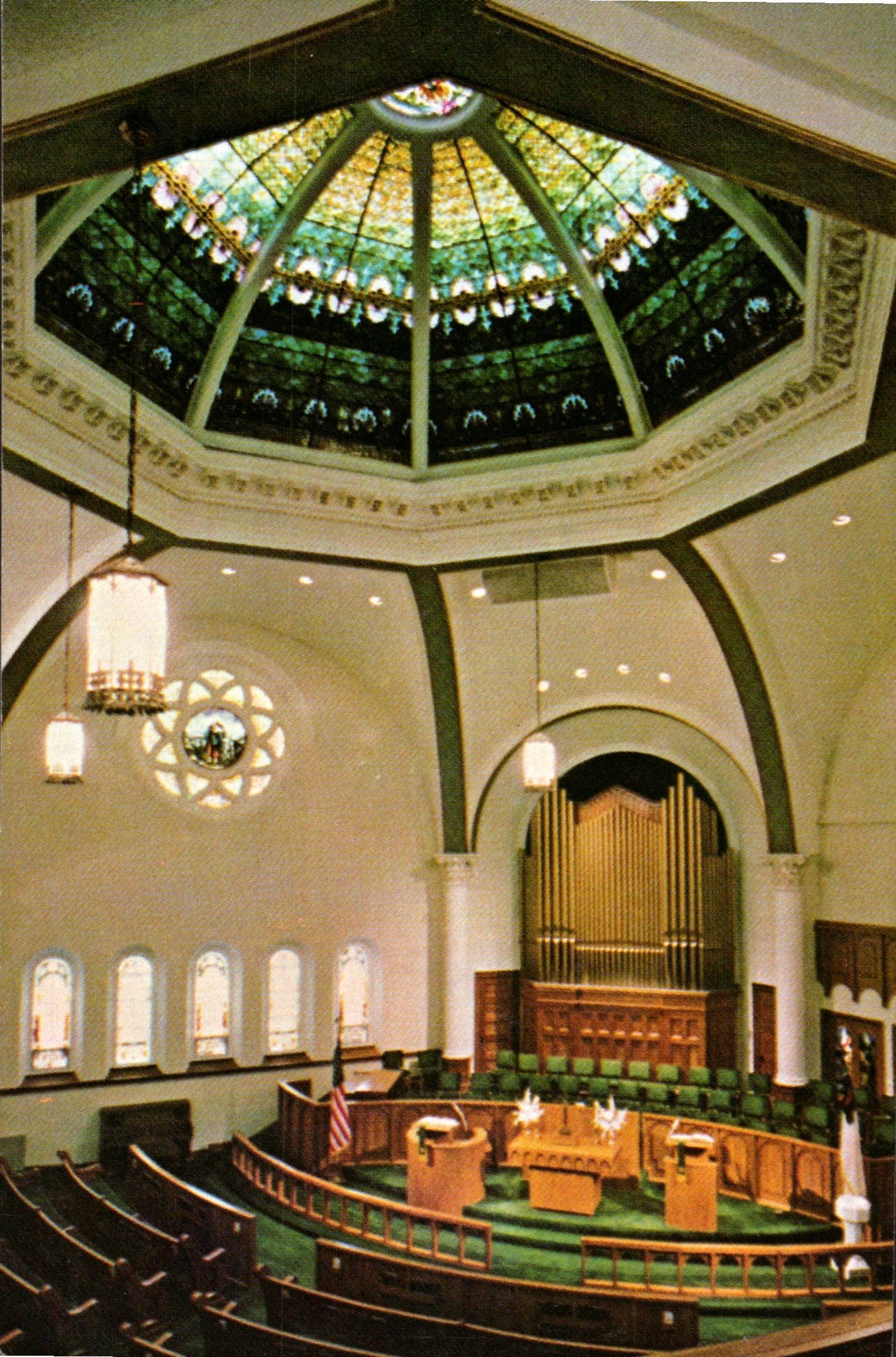 Post cards: “Aerial View of Business District [linen]; “First United Methodist Church” [3 chrome cards, one miniature exterior & two interior views]