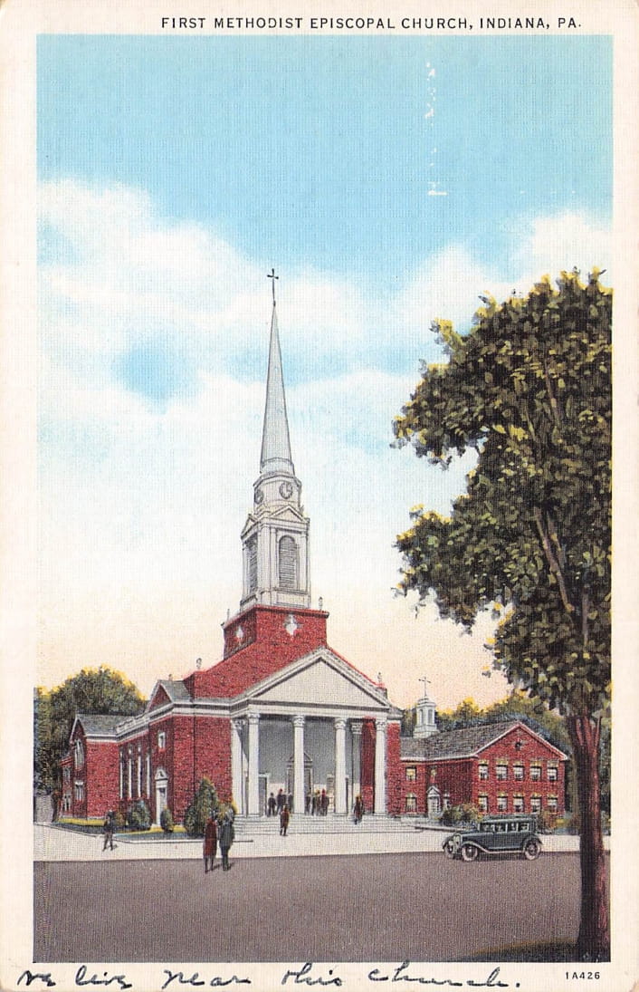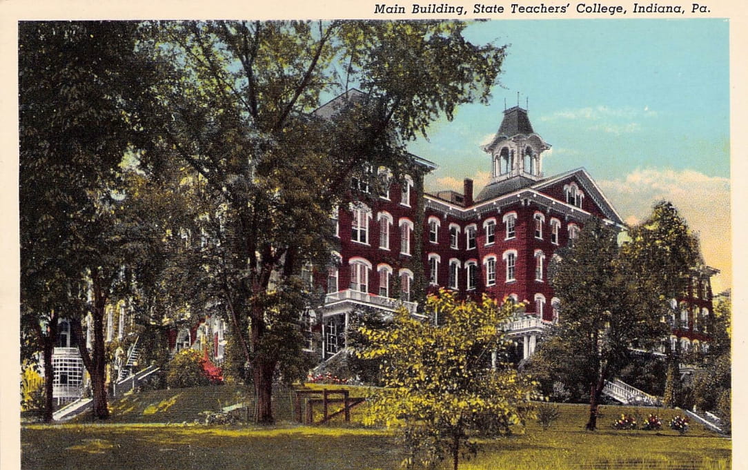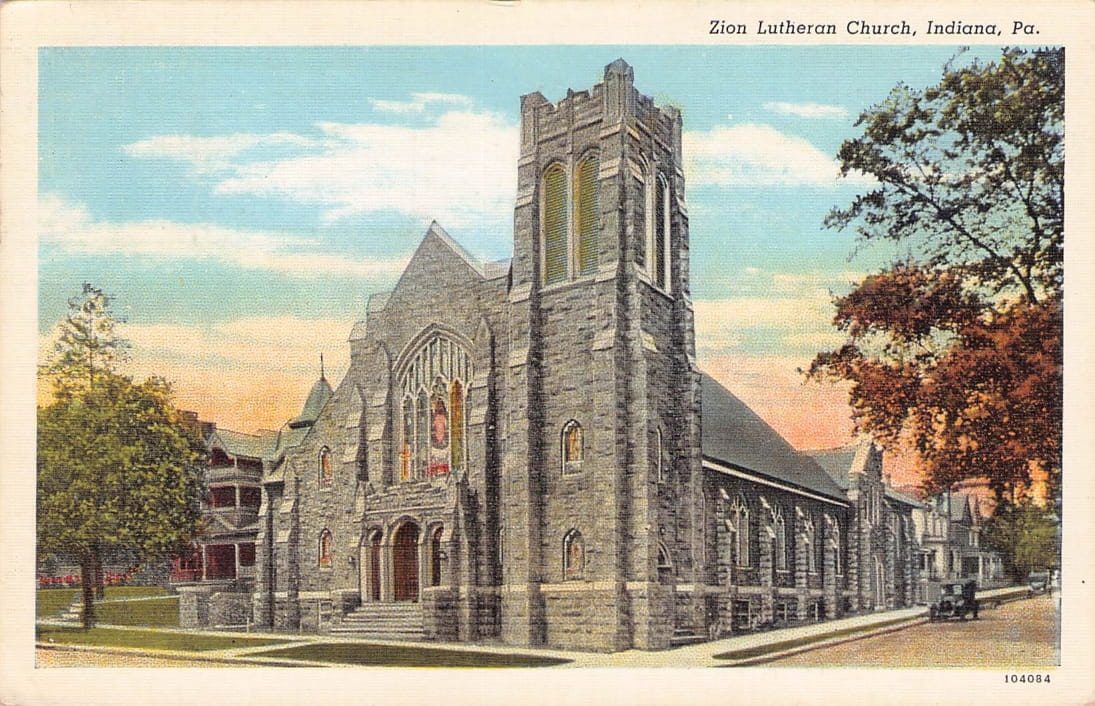 Post cards: “Main Building, State Teacher’s College” [c.1930]; “First Methodist Episcopal Church” [c.1930]; “Zion Lutheran Church” [linen, 1940]; Indiana U., Weyandt Hall (chrome)