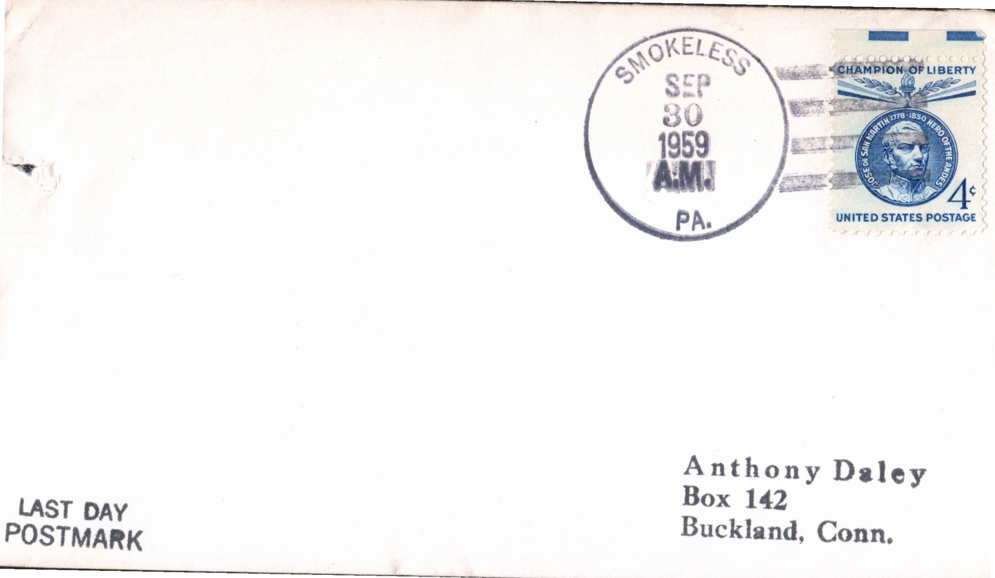 Smokeless (1917-1959) 1959 4-bar on cover, damaged left