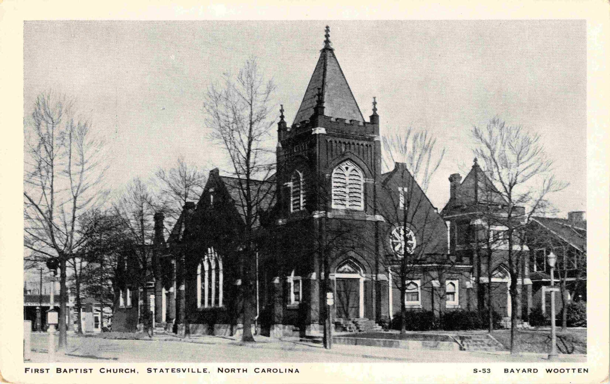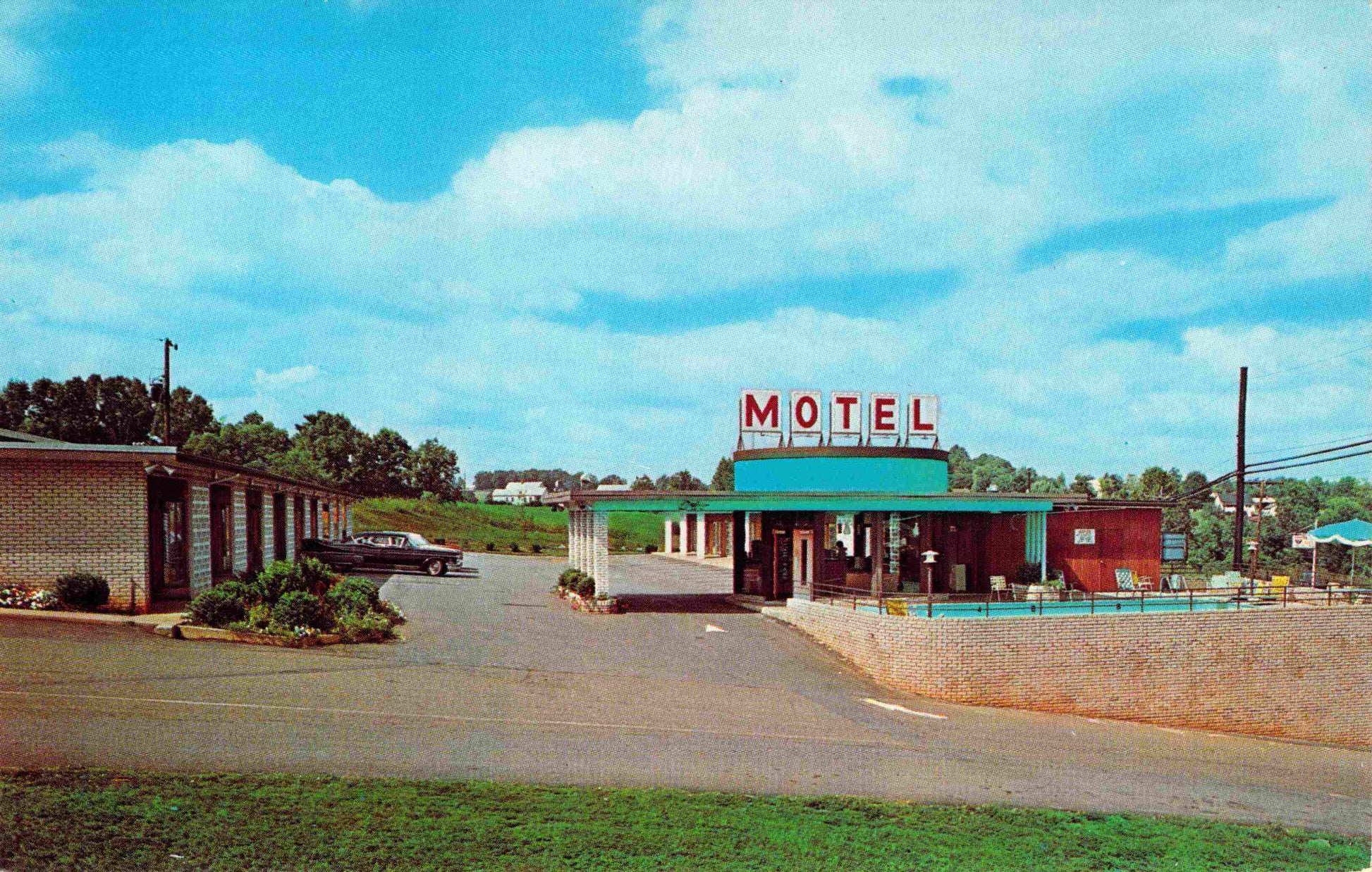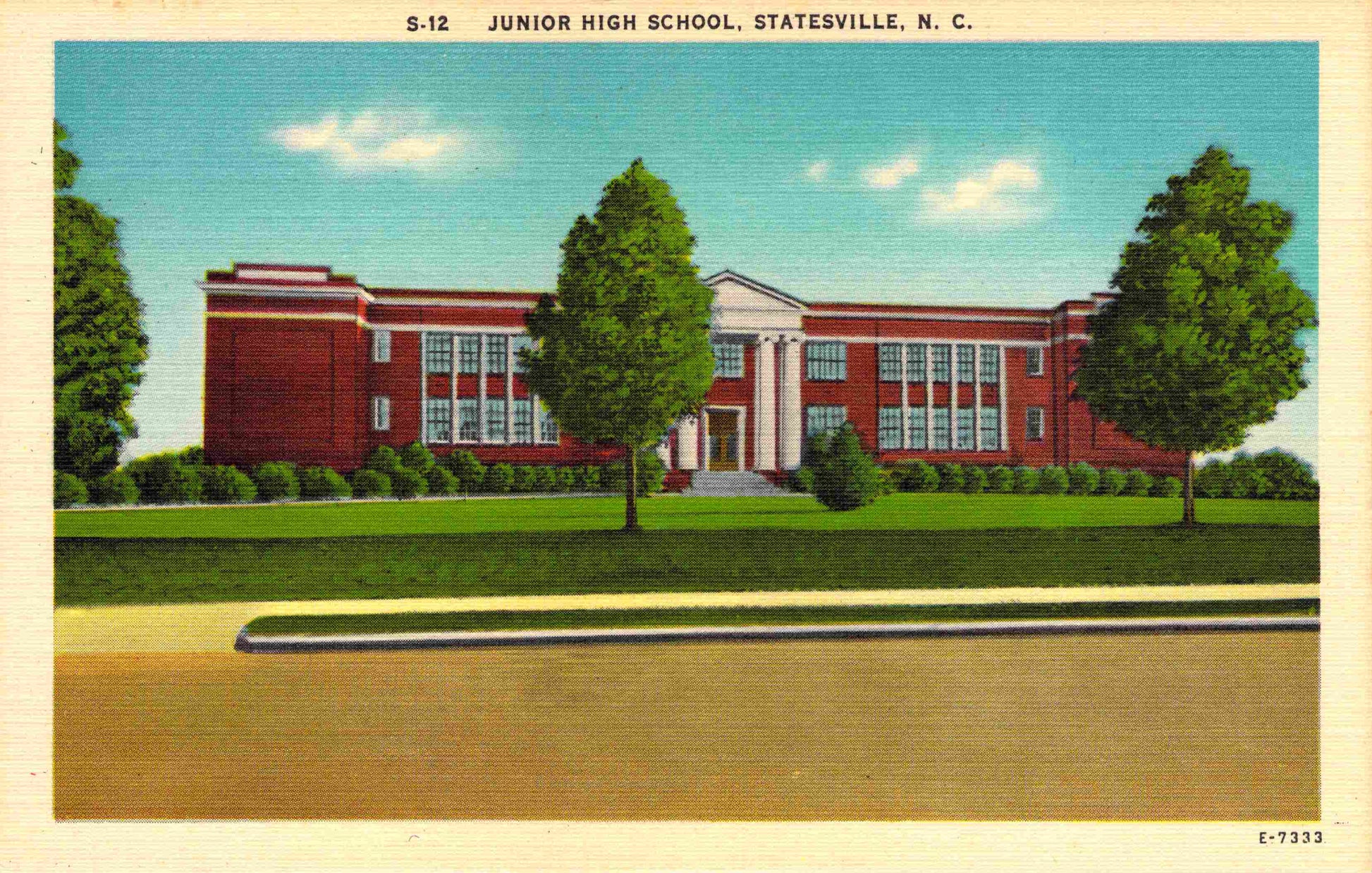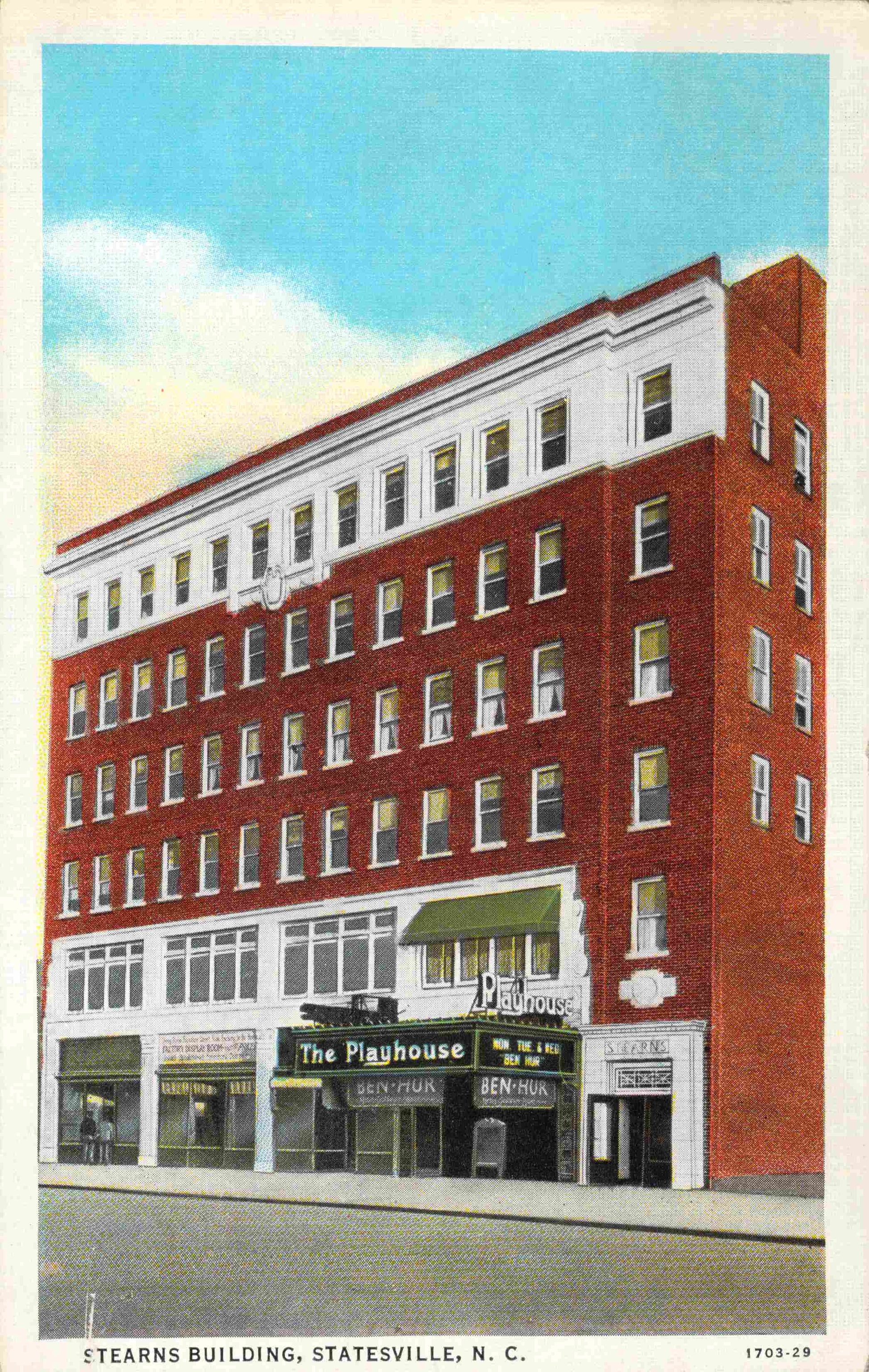 Statesville Post cards: Stearns Building [c.1940?]; Carolina Motel [linen]; Downtown Motor Court [chrome]; Statesville Motor Lodge [chrome]; Allen Jones Restaurant [chrome]; Junior High School [linen]; Baptist Church (B&W); Presbyterian Church [B&W, 1940]