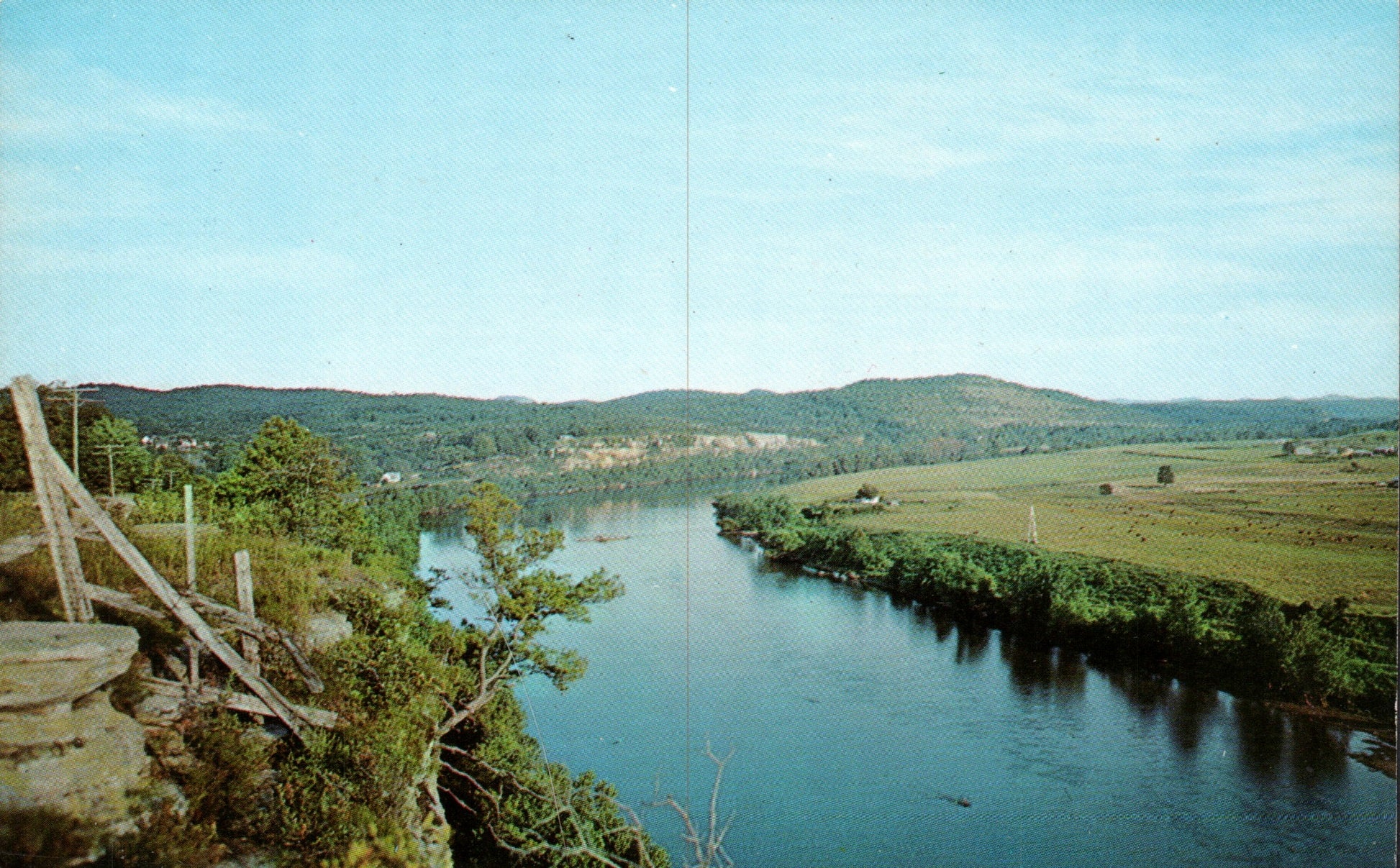 Post card: Distant view of town along river [chrome]