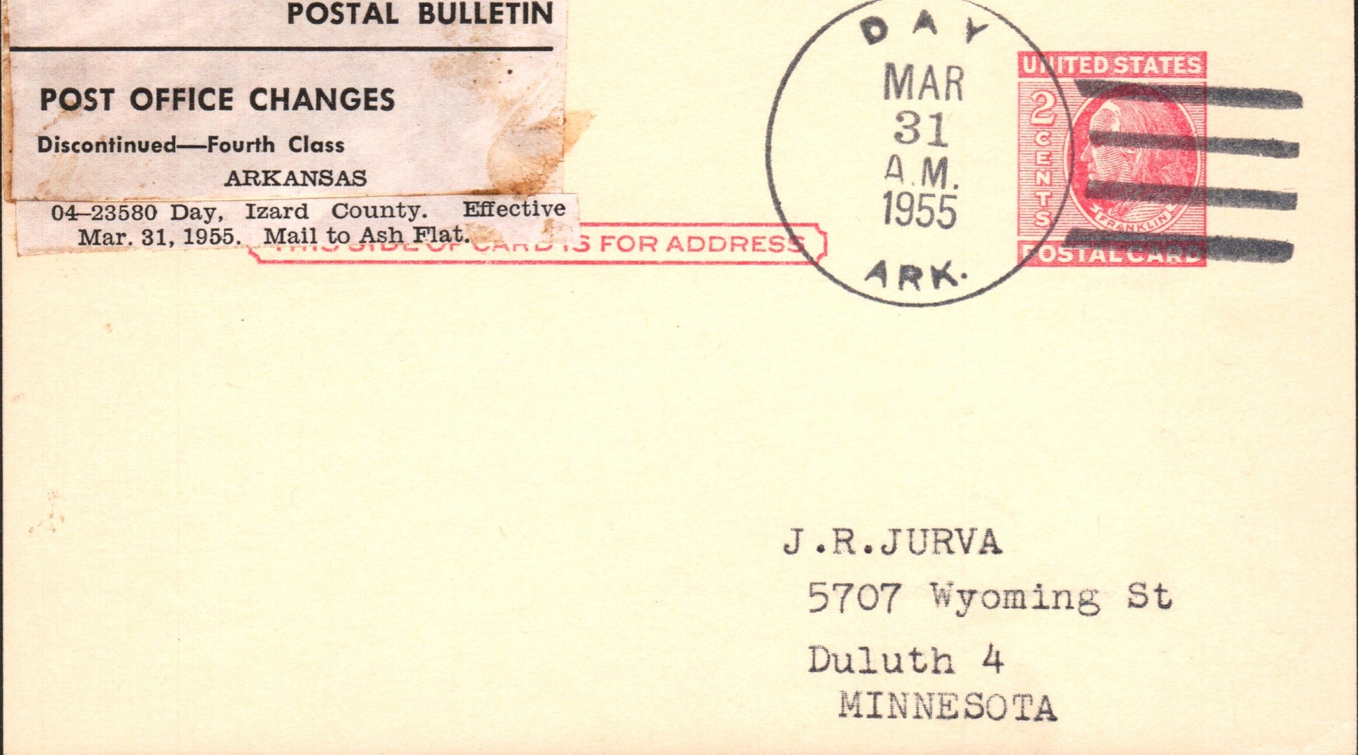 Day (1898-1955) 1955 4-bar on LD Postal Card
