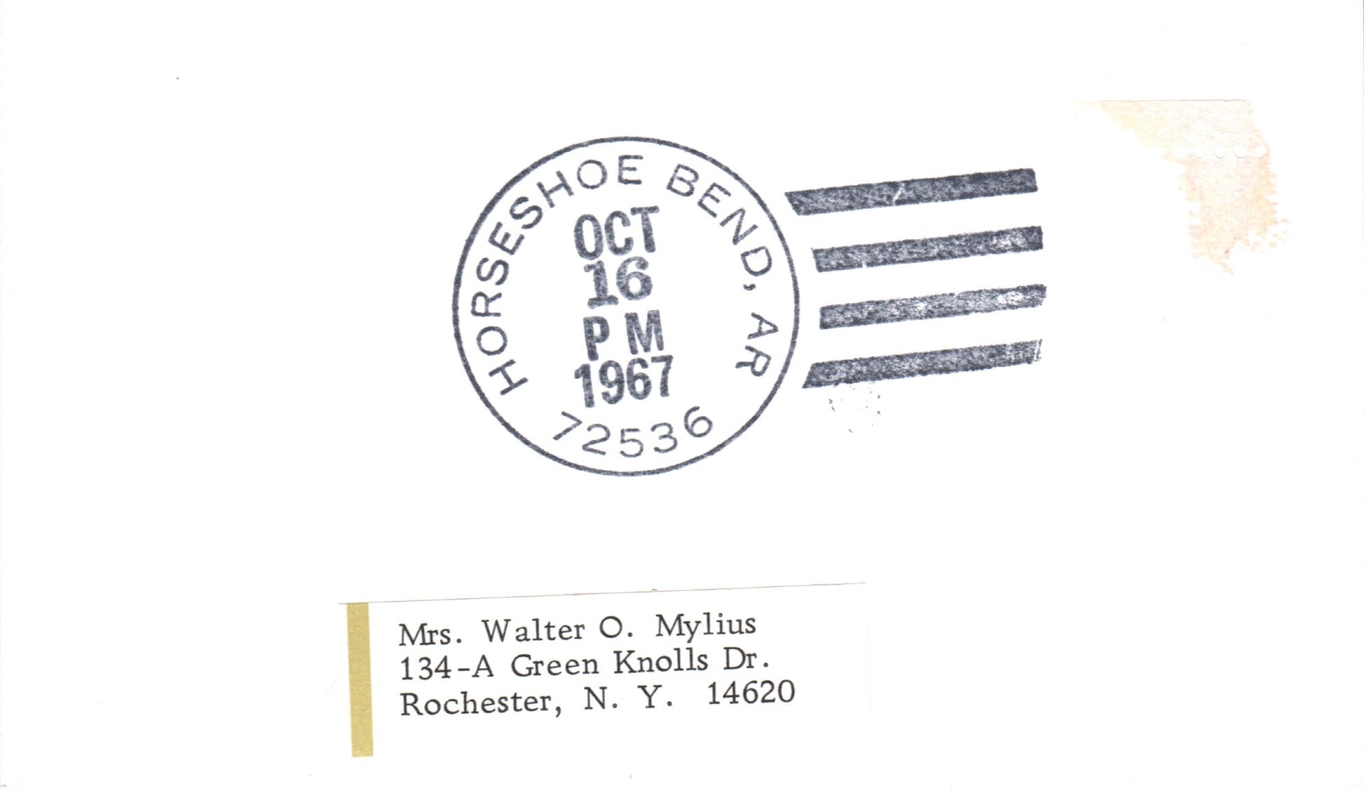 Horseshoe Bend 1967 4-bar on 3x5 card, stamp removed