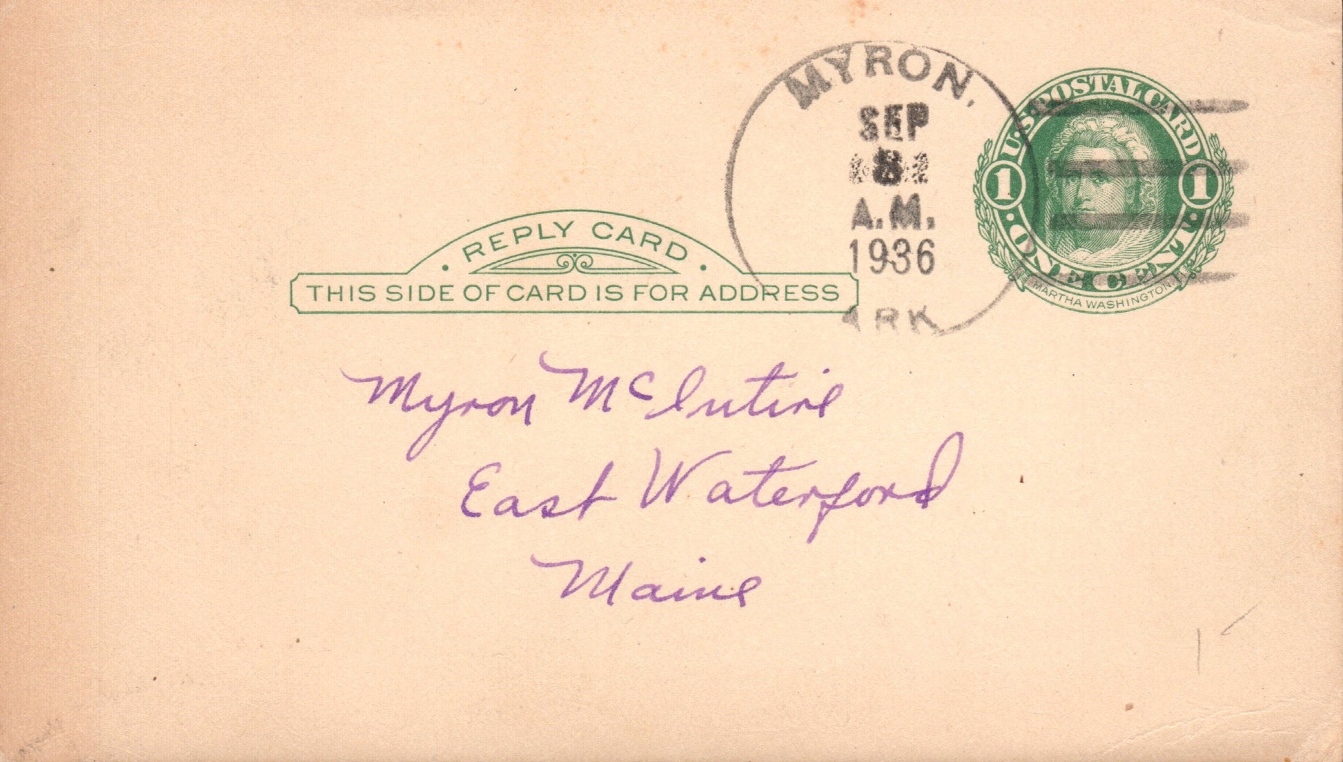 Myron (1904-1955) 1936 4-bar on Postal Card, PM autograph on back