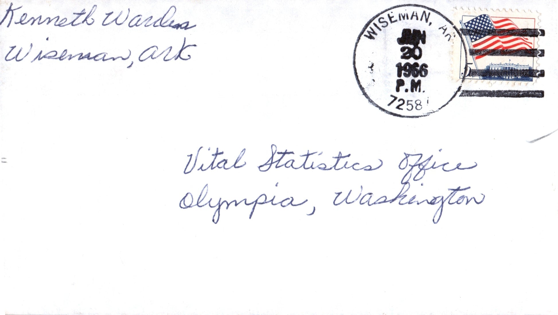 Calico Rock 1966 machine cancel on 3x5 card