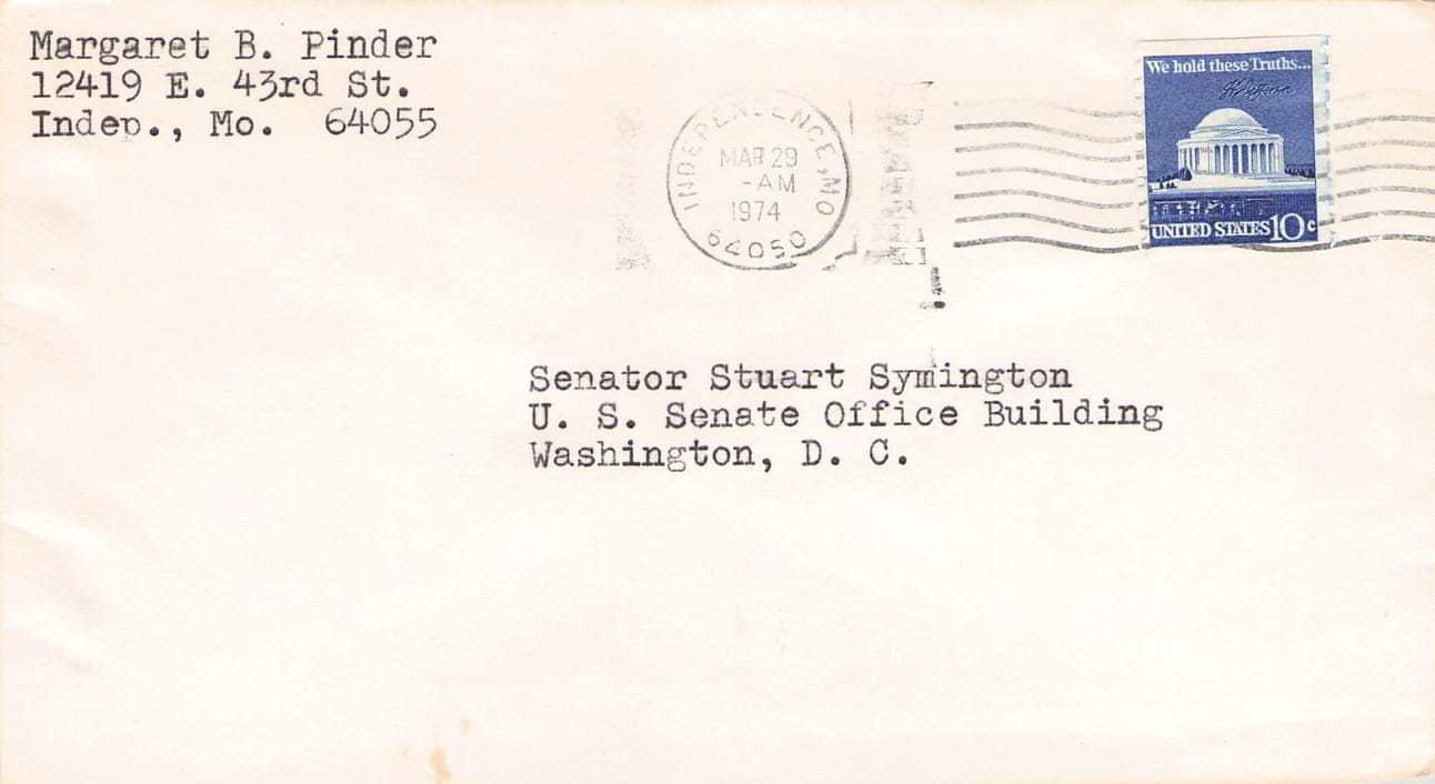 Harry S Truman Sta. 1974 round dater and boxed marking on post card