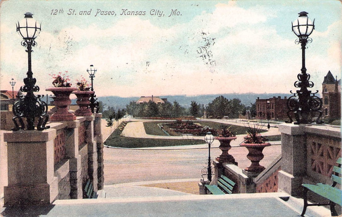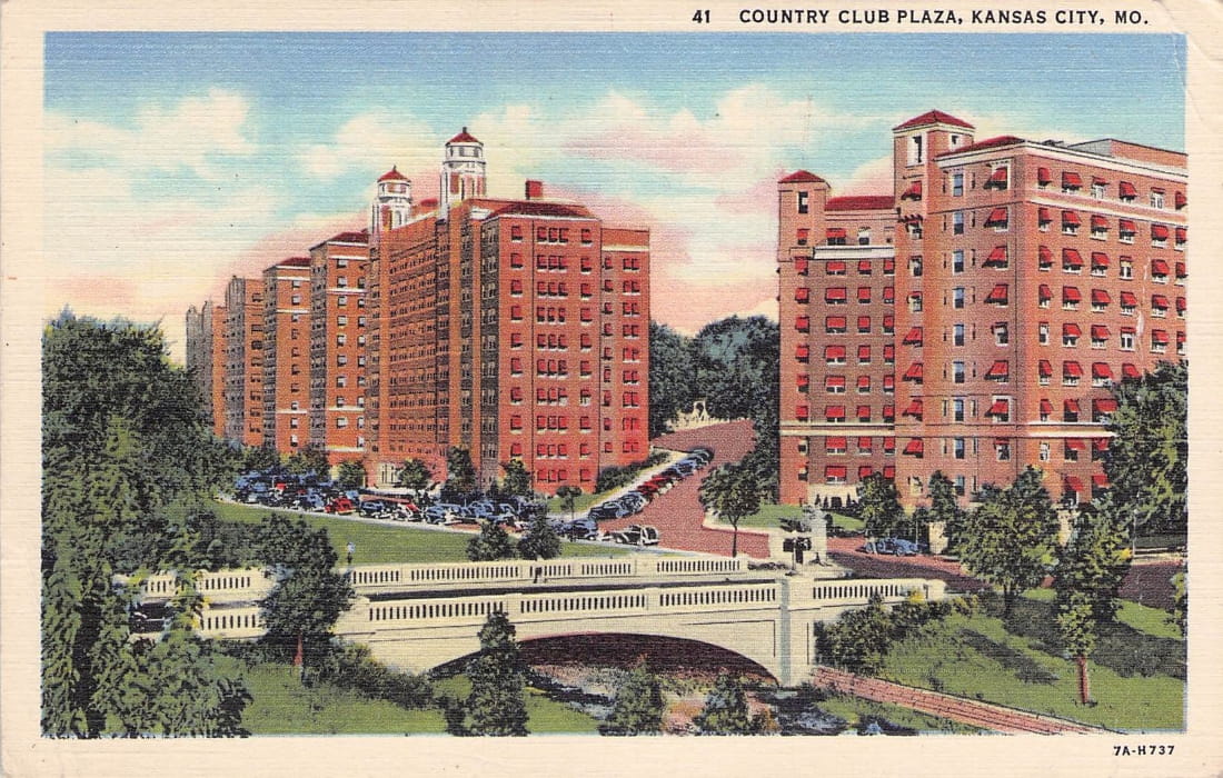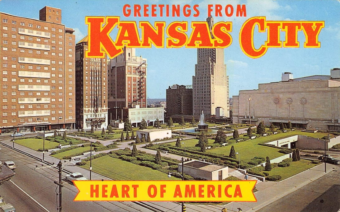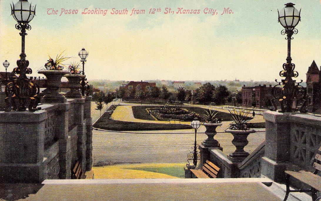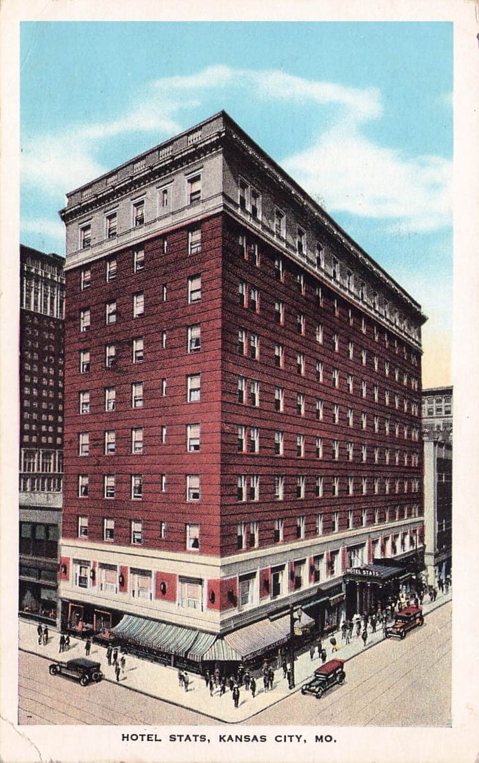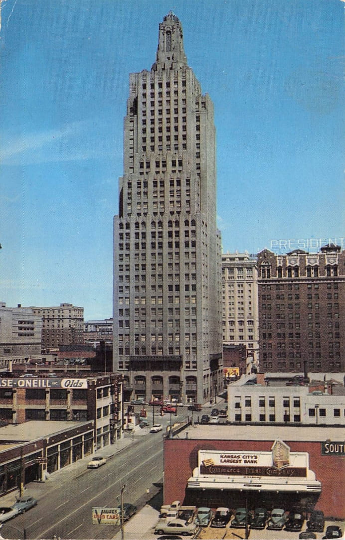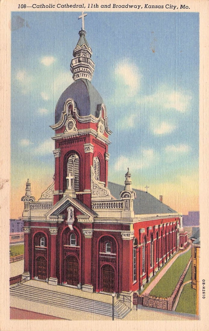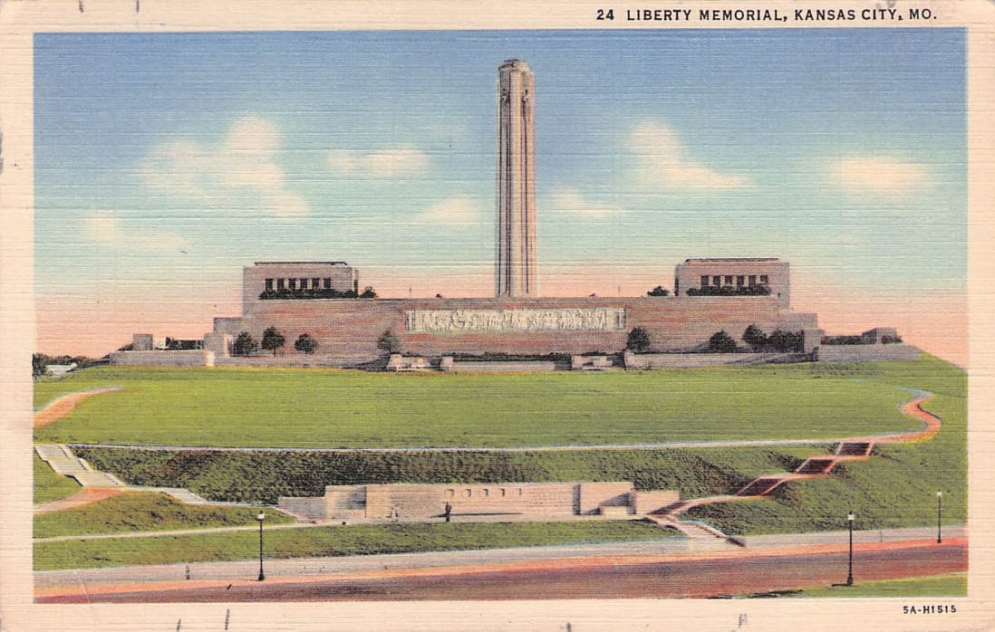 POST CARDS: “Greetings from Kansas City” downtown scene, chrome; 2 downtown views [chrome]; “Skyline, looking across Penn Valley Lake”[linen, 1939, mounting mark]; “Penn Valley Park and Skyline” [linen, 1947]; “Skyline from Penn Valley Park” [linen]; Telephone Building and City Hall [chrome]; Main Street, Macy’s [chrome]; Baltimore Ave.[chrome]; First National Bank building [c.1910]; R.A. Long building [1909]; Power and Light building [chrome]; Auditorium and Plaza; Missouri River, K.C. in background [linen]; Bell Telephone Bldg.; Professional Bldg.; Scarritt Bldg. [1914]; Hotel Baltimore [c.1930]; Baltimore Hotel dining room [c.1910]; Hotel Bellevue “El Casbah Room” linen]; Hotel Continental [1947]; Hotel Muehlenbach [2 views, one 1942 linen, one chrome]; Hotel Phillips lobby [1910]; Hotel President [linen; 1947]; City Market [1912, with horse-drawn]; American Royal Bldg.; Crown Center complex [Continental-size]; Hiway Inn [chrome]; Union Station interior [1920]; Country Club Plaza [two linen views]; Unity Motel aerial view [chrome]; Hotel Plaza & Union Station [linen]; Union Station [linen, 1935, postal smudges on front]; “Union Station and Sky Line by Night” [linen, 1946]; Intercity Viaduct [c.1910]; Court House [1910]; Court House and City Hall [linen]; City Hall [1912]; Post office [linen]; Court House [1909]; Library [1909]; Library [chrome, 1969]; Convention Hall [five views, all pre-1914]; Convention Complex [chrome]; Auditorium [1907]; Municipal Auditorium [4 views, one chrome, 3 linen, one is interior]; Convention Complex [Continental, dual view, 1983]; Nelson Gallery of Art [linen]; Elks Club [1909]; Armour Memorial Home [chrome]; Calvary Baptist church c.1910; Church of Christ c.1910; Museum [linen]; Benedictine Sanctuary [1961]; Catholic Cathedral [linen]; Methodist Church c.1910; First Baptist Church c.1910; Christian Church [1911]; Westminster Congregational Church [c.1910]; “Pergola on the Paseo” [1906]; “Paseo Looking North” [c.1910]; Armour Boulevard [1911]; “The Spring on Cliff Drive [1908, horse-drawn]; Independence Boulevard [1905]; “Santa Fe Trail Through Penn Valley Park” [c.1910]; Miniature Steam Railway [B&W]; 26 diff. Parks and Monuments. most early, the best of which is a Sunday School picnic game; 5 Drives & Bridges; Armour-Swift Bridge [c.1910]; Burlington Bridge [1911]