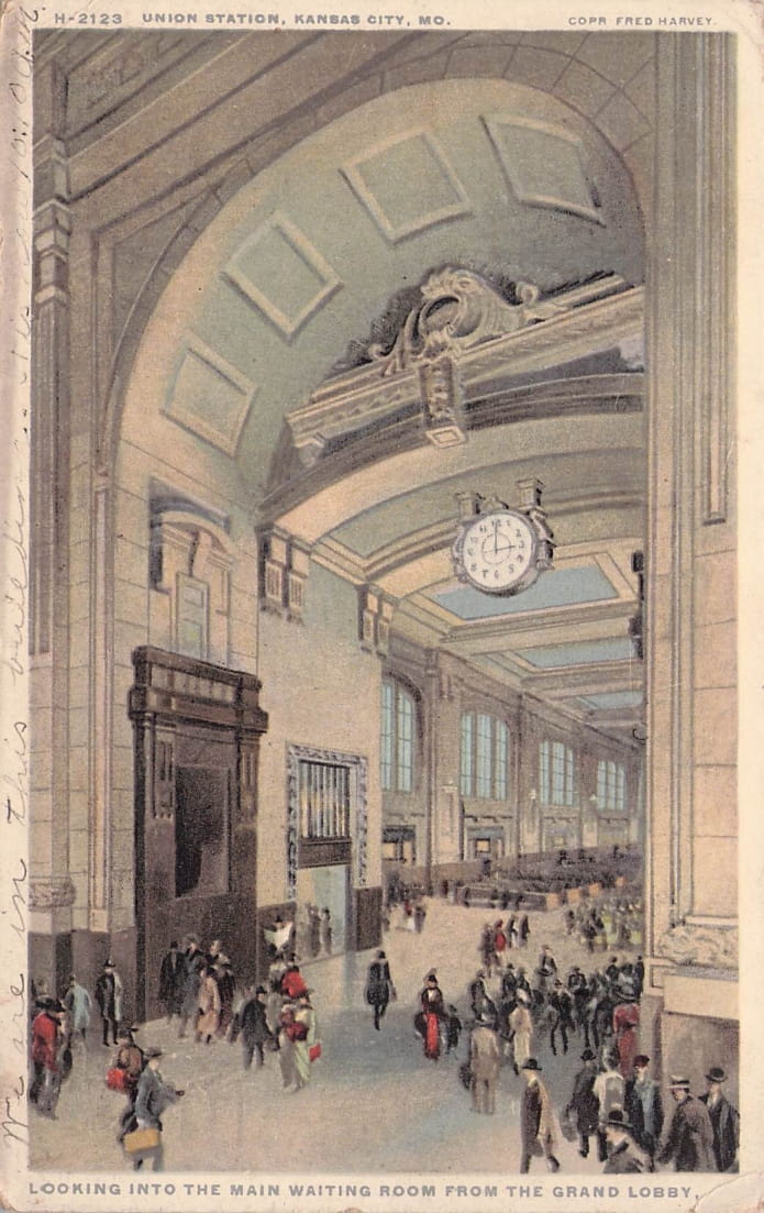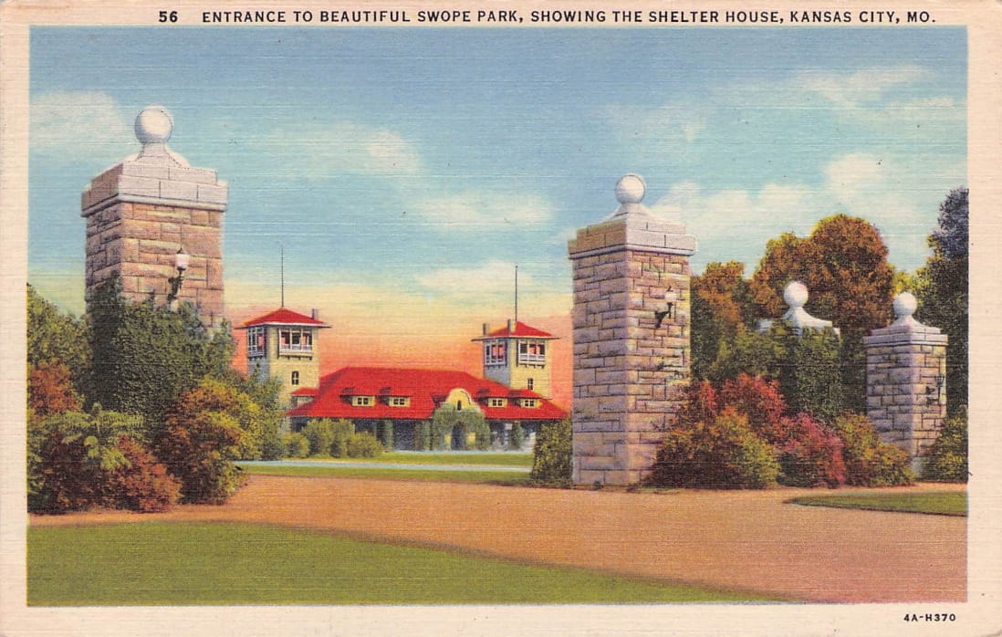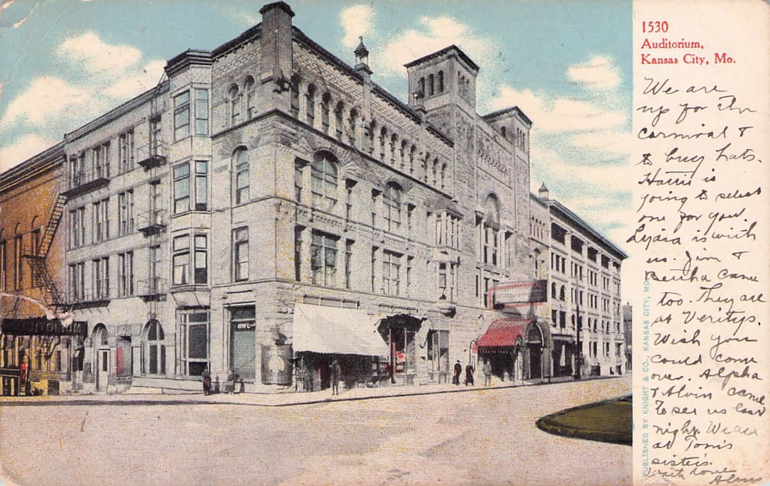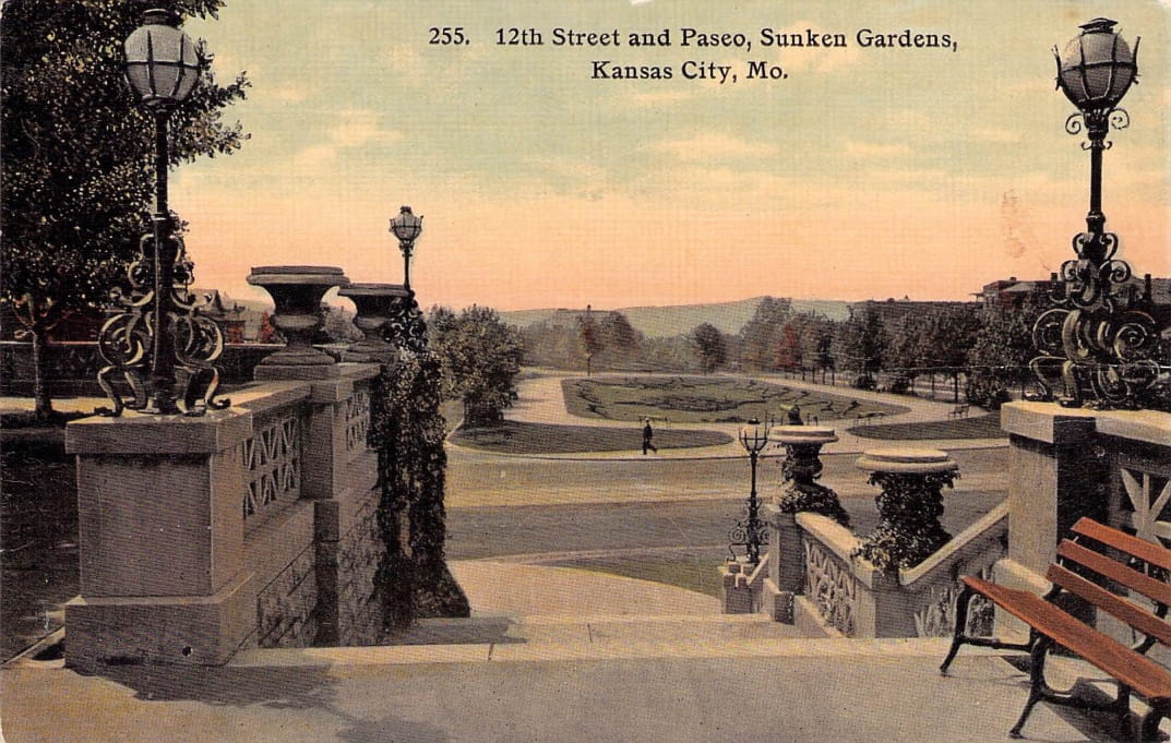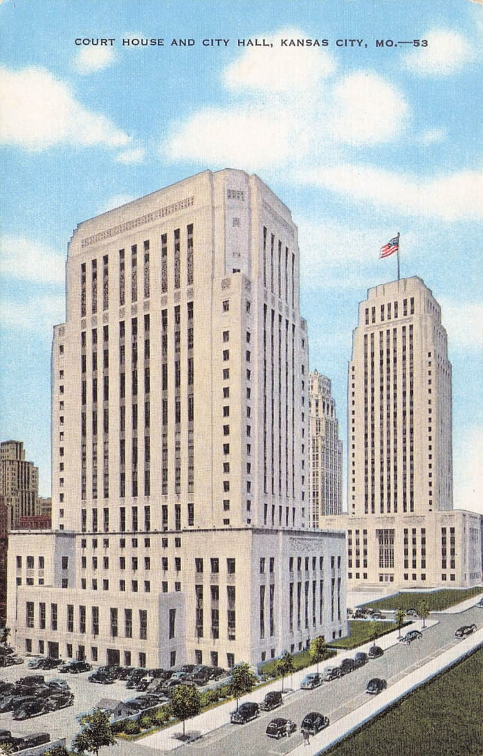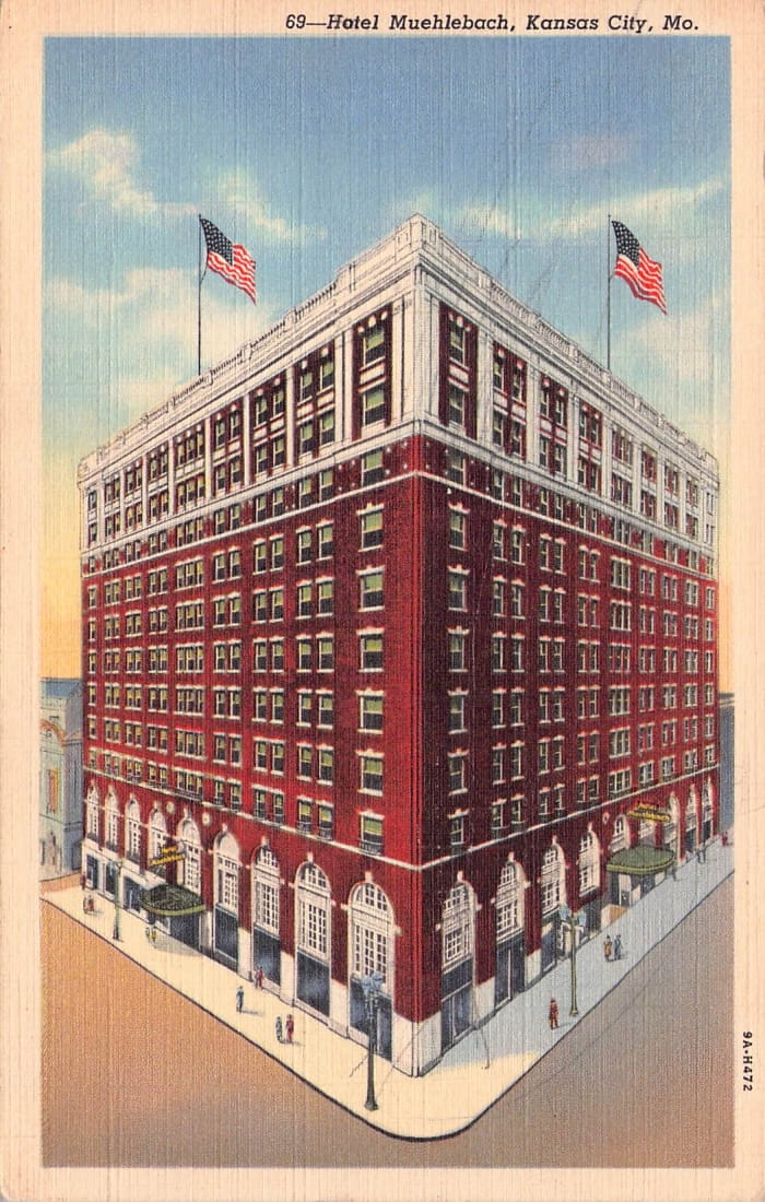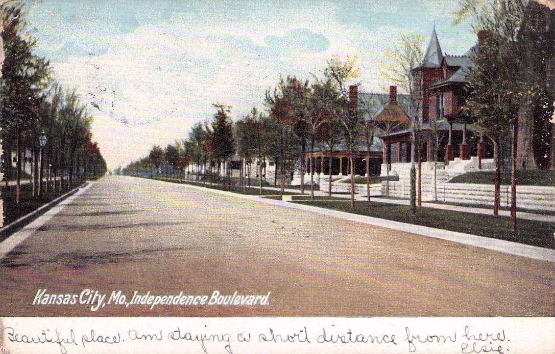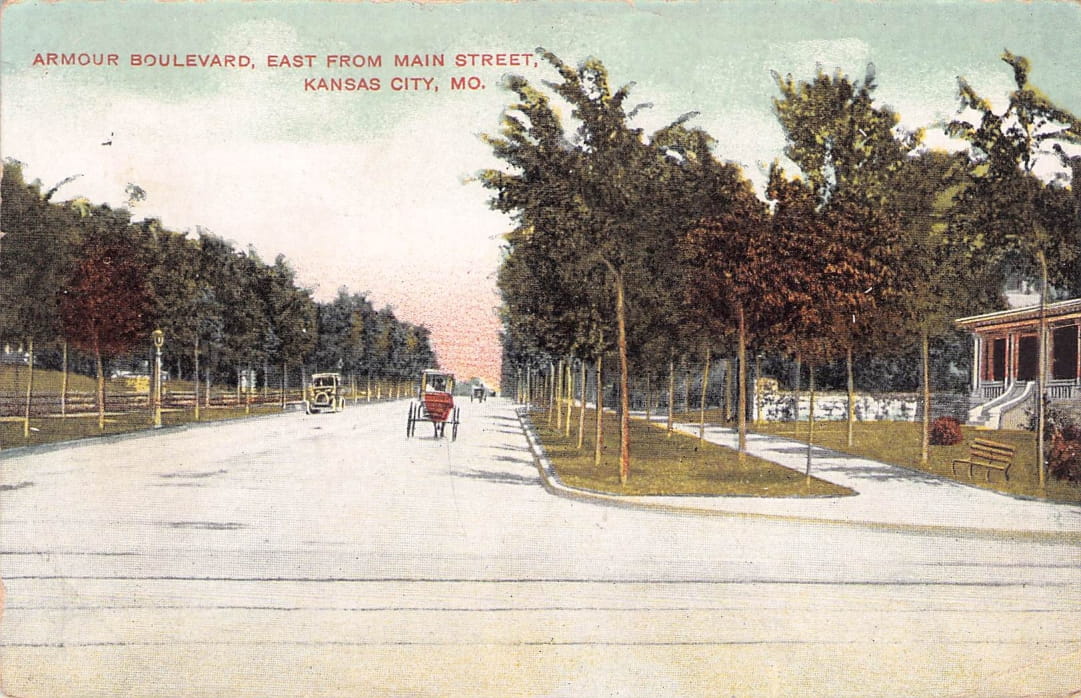 POST CARDS: “Greetings from Kansas City” downtown scene, chrome; 2 downtown views [chrome]; “Skyline, looking across Penn Valley Lake”[linen, 1939, mounting mark]; “Penn Valley Park and Skyline” [linen, 1947]; “Skyline from Penn Valley Park” [linen]; Telephone Building and City Hall [chrome]; Main Street, Macy’s [chrome]; Baltimore Ave.[chrome]; First National Bank building [c.1910]; R.A. Long building [1909]; Power and Light building [chrome]; Auditorium and Plaza; Missouri River, K.C. in background [linen]; Bell Telephone Bldg.; Professional Bldg.; Scarritt Bldg. [1914]; Hotel Baltimore [c.1930]; Baltimore Hotel dining room [c.1910]; Hotel Bellevue “El Casbah Room” linen]; Hotel Continental [1947]; Hotel Muehlenbach [2 views, one 1942 linen, one chrome]; Hotel Phillips lobby [1910]; Hotel President [linen; 1947]; City Market [1912, with horse-drawn]; American Royal Bldg.; Crown Center complex [Continental-size]; Hiway Inn [chrome]; Union Station interior [1920]; Country Club Plaza [two linen views]; Unity Motel aerial view [chrome]; Hotel Plaza & Union Station [linen]; Union Station [linen, 1935, postal smudges on front]; “Union Station and Sky Line by Night” [linen, 1946]; Intercity Viaduct [c.1910]; Court House [1910]; Court House and City Hall [linen]; City Hall [1912]; Post office [linen]; Court House [1909]; Library [1909]; Library [chrome, 1969]; Convention Hall [five views, all pre-1914]; Convention Complex [chrome]; Auditorium [1907]; Municipal Auditorium [4 views, one chrome, 3 linen, one is interior]; Convention Complex [Continental, dual view, 1983]; Nelson Gallery of Art [linen]; Elks Club [1909]; Armour Memorial Home [chrome]; Calvary Baptist church c.1910; Church of Christ c.1910; Museum [linen]; Benedictine Sanctuary [1961]; Catholic Cathedral [linen]; Methodist Church c.1910; First Baptist Church c.1910; Christian Church [1911]; Westminster Congregational Church [c.1910]; “Pergola on the Paseo” [1906]; “Paseo Looking North” [c.1910]; Armour Boulevard [1911]; “The Spring on Cliff Drive [1908, horse-drawn]; Independence Boulevard [1905]; “Santa Fe Trail Through Penn Valley Park” [c.1910]; Miniature Steam Railway [B&W]; 26 diff. Parks and Monuments. most early, the best of which is a Sunday School picnic game; 5 Drives & Bridges; Armour-Swift Bridge [c.1910]; Burlington Bridge [1911]