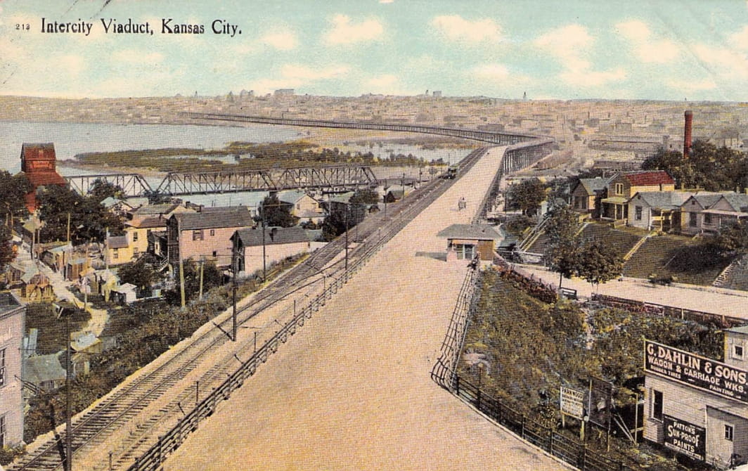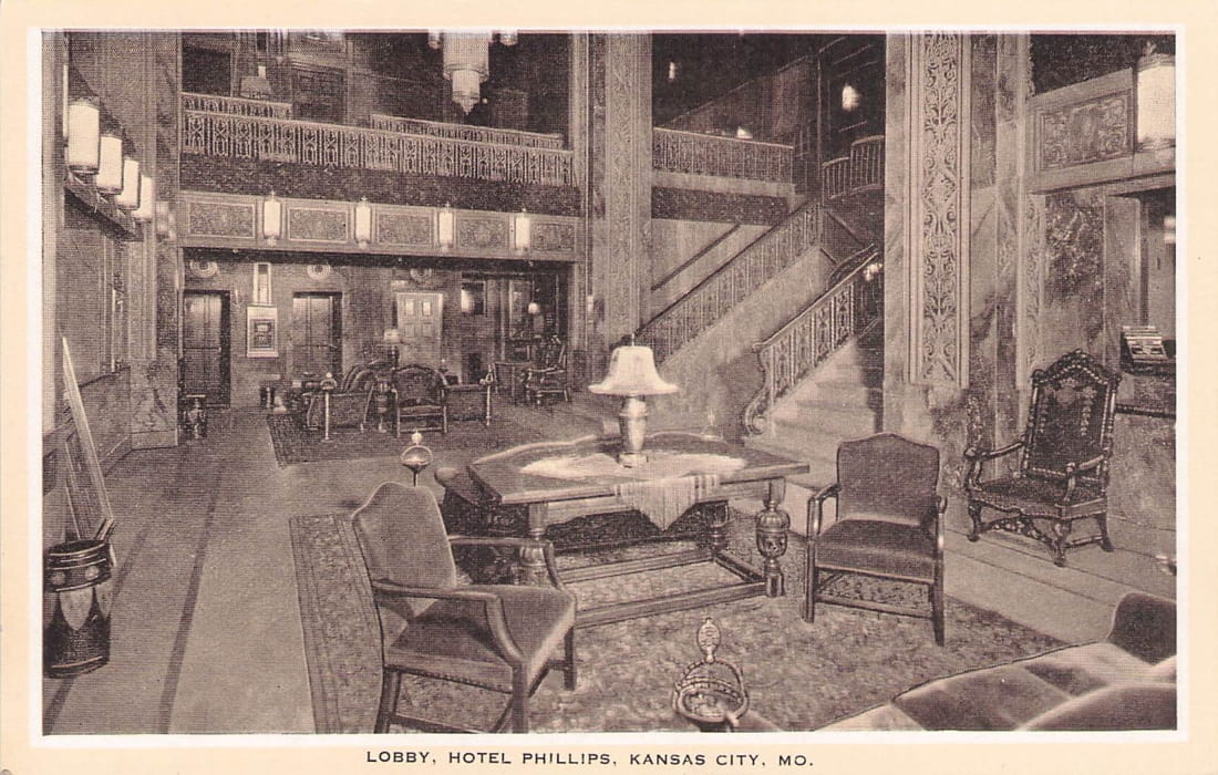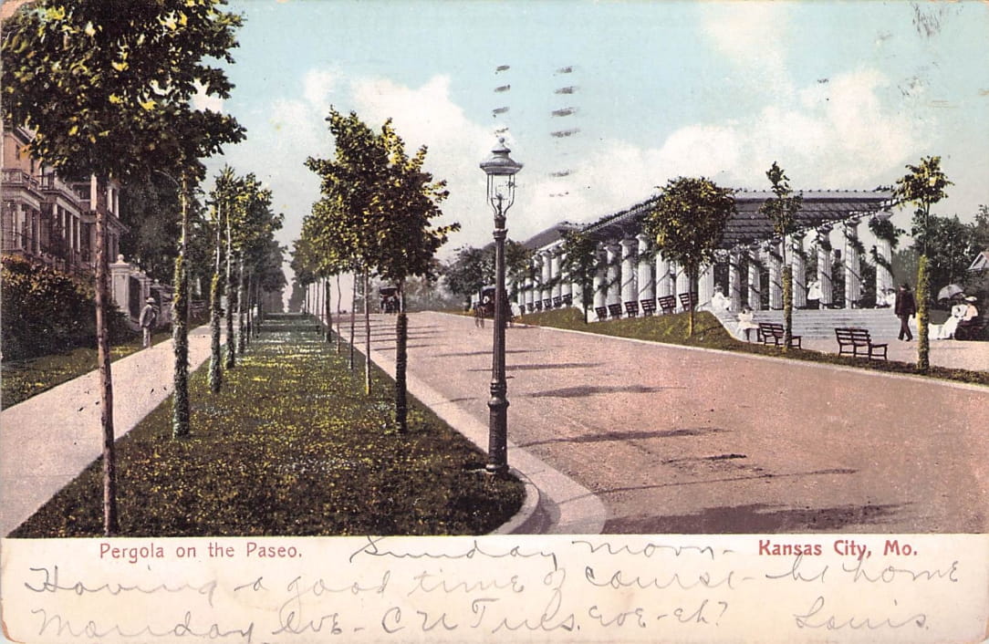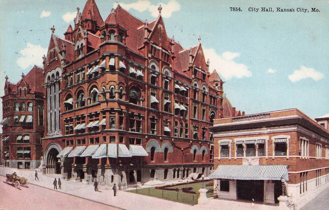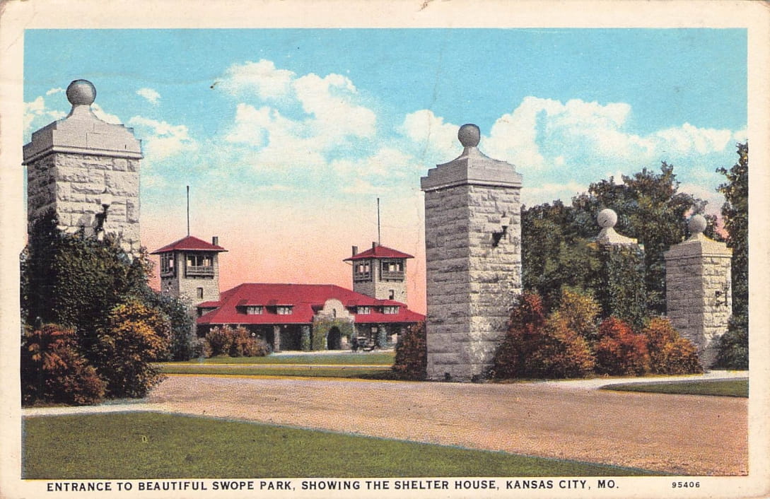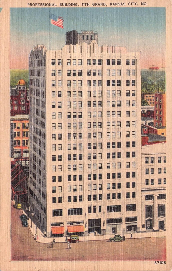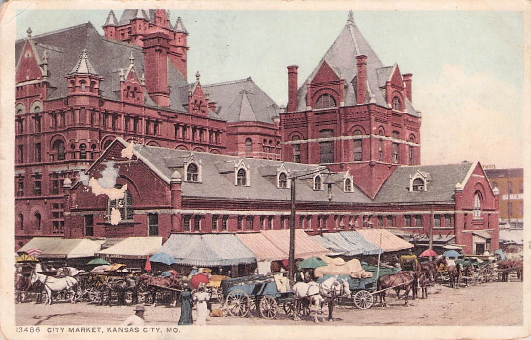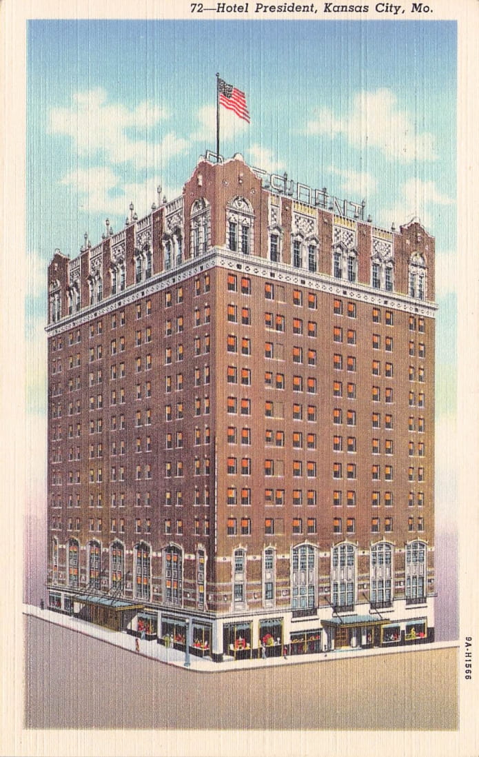 POST CARDS: “Greetings from Kansas City” downtown scene, chrome; 2 downtown views [chrome]; “Skyline, looking across Penn Valley Lake”[linen, 1939, mounting mark]; “Penn Valley Park and Skyline” [linen, 1947]; “Skyline from Penn Valley Park” [linen]; Telephone Building and City Hall [chrome]; Main Street, Macy’s [chrome]; Baltimore Ave.[chrome]; First National Bank building [c.1910]; R.A. Long building [1909]; Power and Light building [chrome]; Auditorium and Plaza; Missouri River, K.C. in background [linen]; Bell Telephone Bldg.; Professional Bldg.; Scarritt Bldg. [1914]; Hotel Baltimore [c.1930]; Baltimore Hotel dining room [c.1910]; Hotel Bellevue “El Casbah Room” linen]; Hotel Continental [1947]; Hotel Muehlenbach [2 views, one 1942 linen, one chrome]; Hotel Phillips lobby [1910]; Hotel President [linen; 1947]; City Market [1912, with horse-drawn]; American Royal Bldg.; Crown Center complex [Continental-size]; Hiway Inn [chrome]; Union Station interior [1920]; Country Club Plaza [two linen views]; Unity Motel aerial view [chrome]; Hotel Plaza & Union Station [linen]; Union Station [linen, 1935, postal smudges on front]; “Union Station and Sky Line by Night” [linen, 1946]; Intercity Viaduct [c.1910]; Court House [1910]; Court House and City Hall [linen]; City Hall [1912]; Post office [linen]; Court House [1909]; Library [1909]; Library [chrome, 1969]; Convention Hall [five views, all pre-1914]; Convention Complex [chrome]; Auditorium [1907]; Municipal Auditorium [4 views, one chrome, 3 linen, one is interior]; Convention Complex [Continental, dual view, 1983]; Nelson Gallery of Art [linen]; Elks Club [1909]; Armour Memorial Home [chrome]; Calvary Baptist church c.1910; Church of Christ c.1910; Museum [linen]; Benedictine Sanctuary [1961]; Catholic Cathedral [linen]; Methodist Church c.1910; First Baptist Church c.1910; Christian Church [1911]; Westminster Congregational Church [c.1910]; “Pergola on the Paseo” [1906]; “Paseo Looking North” [c.1910]; Armour Boulevard [1911]; “The Spring on Cliff Drive [1908, horse-drawn]; Independence Boulevard [1905]; “Santa Fe Trail Through Penn Valley Park” [c.1910]; Miniature Steam Railway [B&W]; 26 diff. Parks and Monuments. most early, the best of which is a Sunday School picnic game; 5 Drives & Bridges; Armour-Swift Bridge [c.1910]; Burlington Bridge [1911]