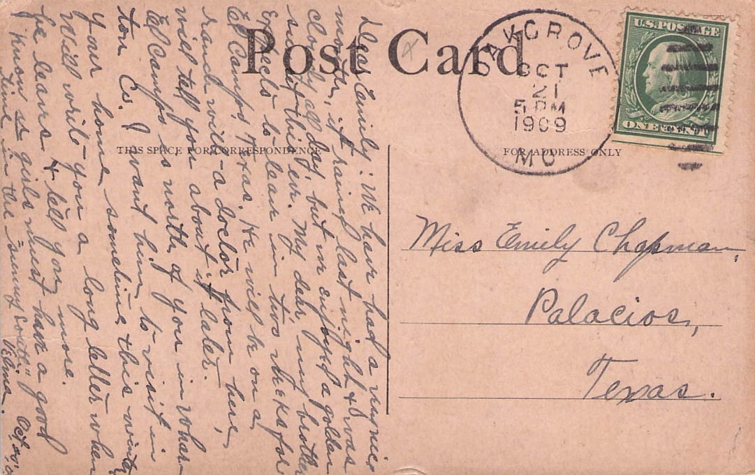 Oak Grove 1909 duplex on post card; 1932 duplex on cover