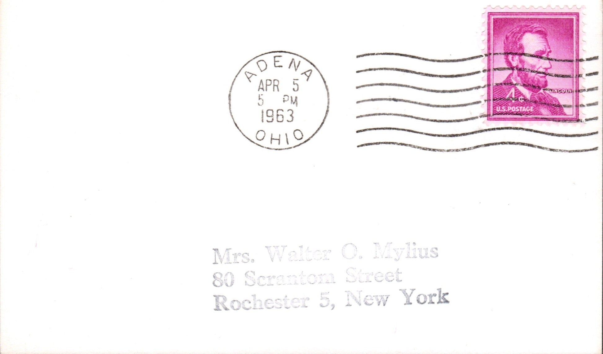 Adena 1963 machine cancel on 3x5 card