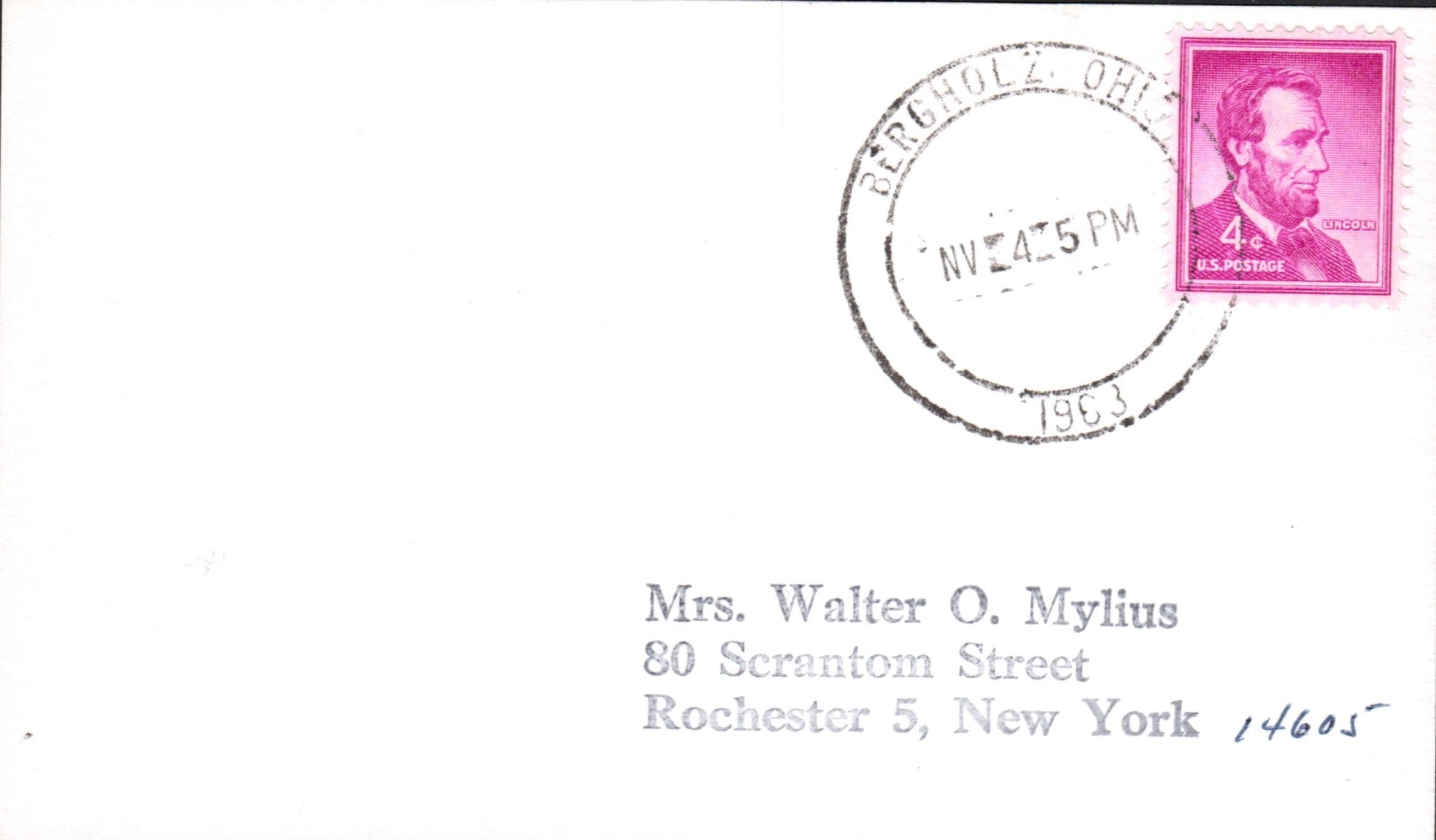 Bergholz 1963 double circle on 3x5 card