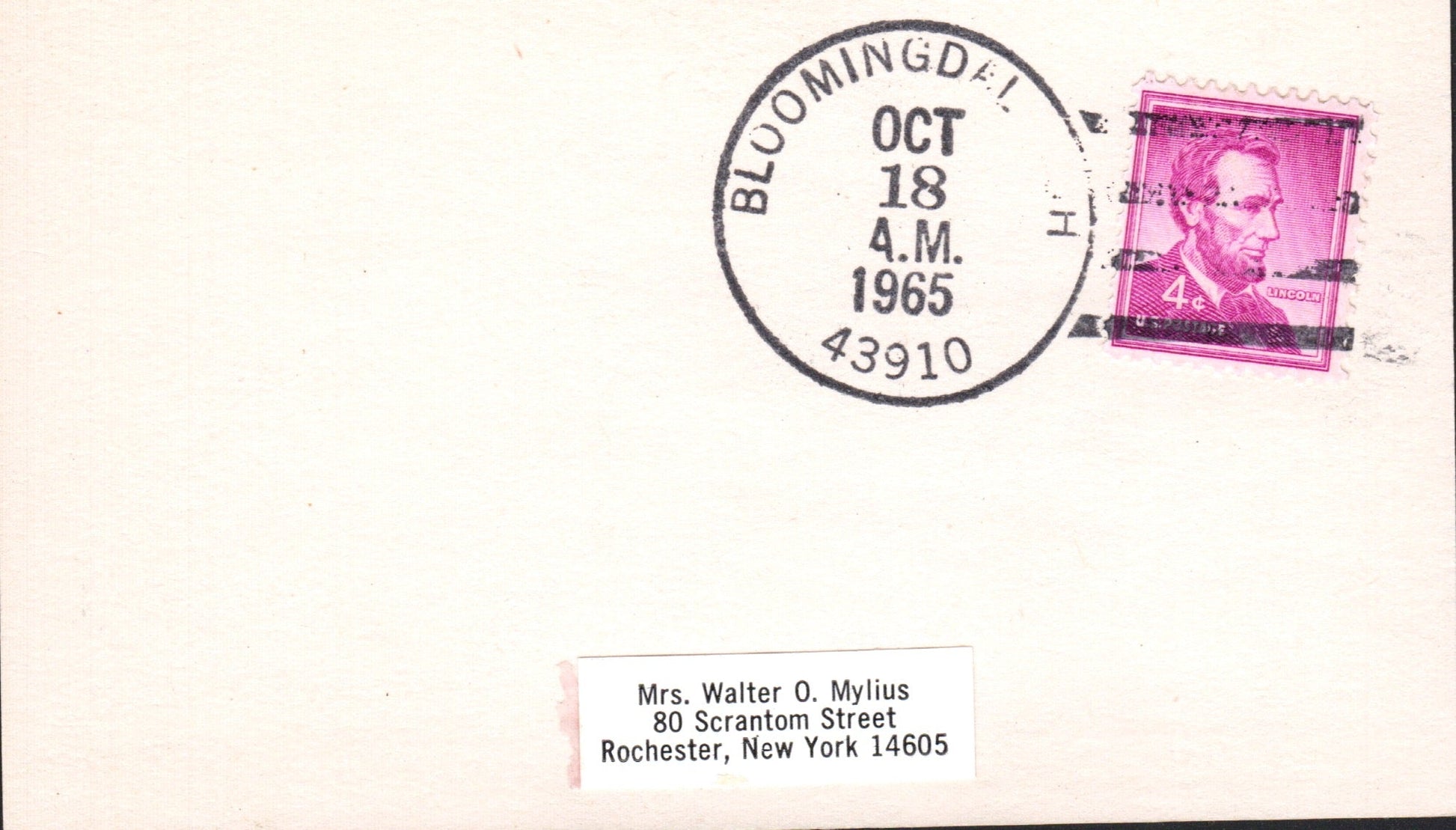 Bloomingdale 1964 machine cancel on 3x5 card; 1965 machine cancel on 3x5 card