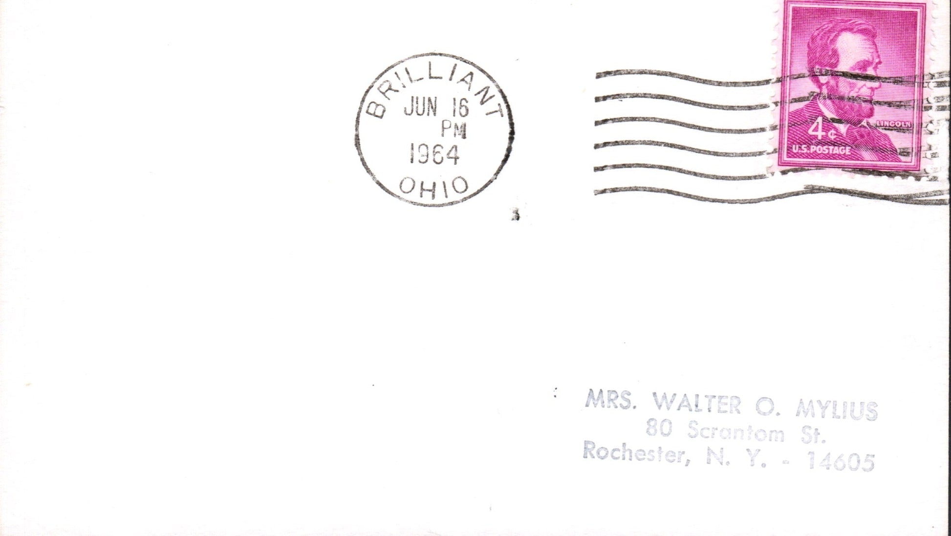 Brilliant 1964 machine cancel on 3x5 card, PM autograph on back