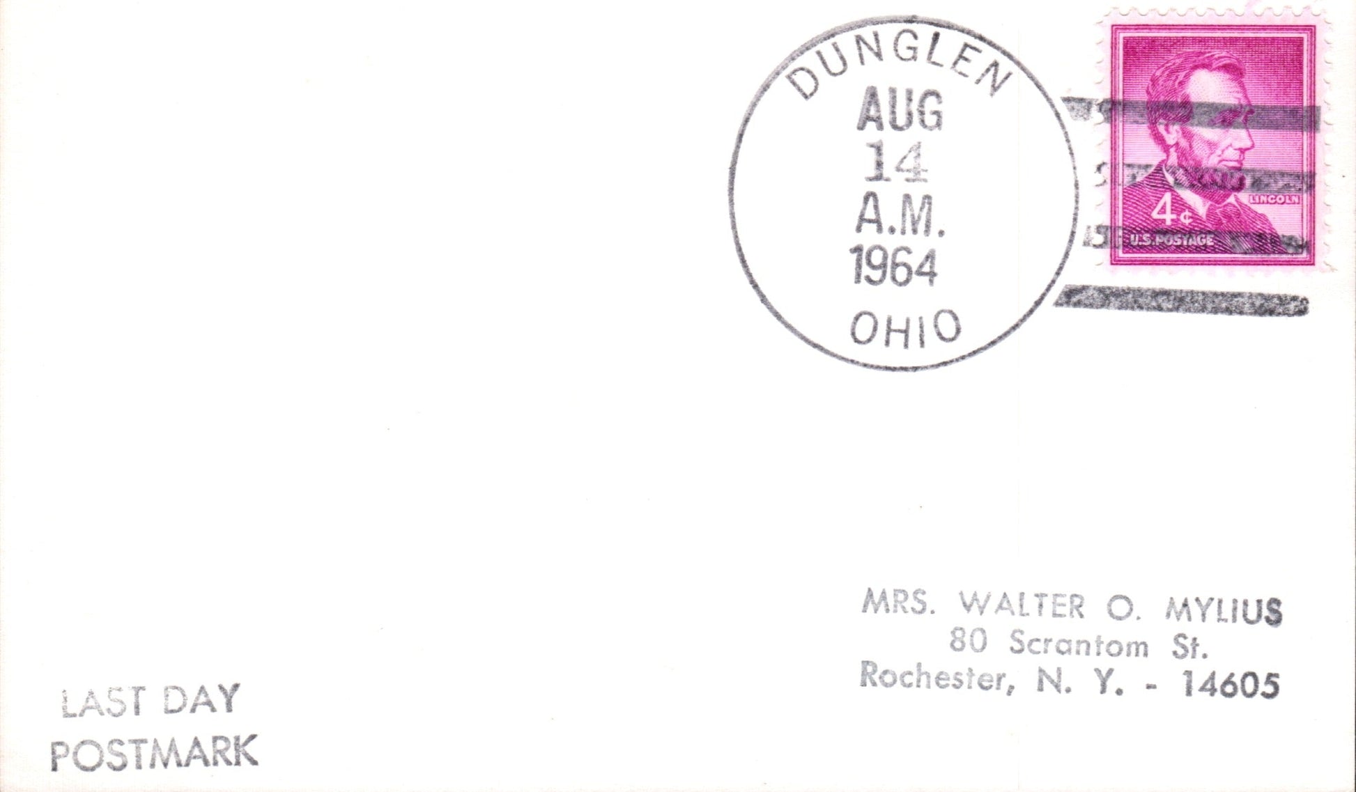 Dunglen (1903-1964) 1964 4-bar on LD 3x5 card