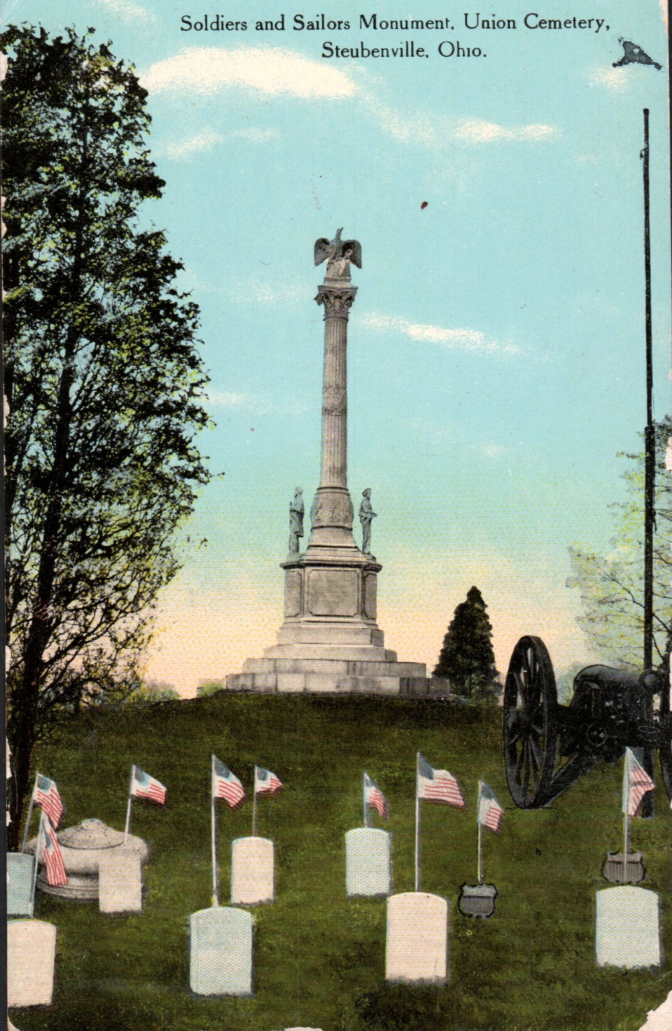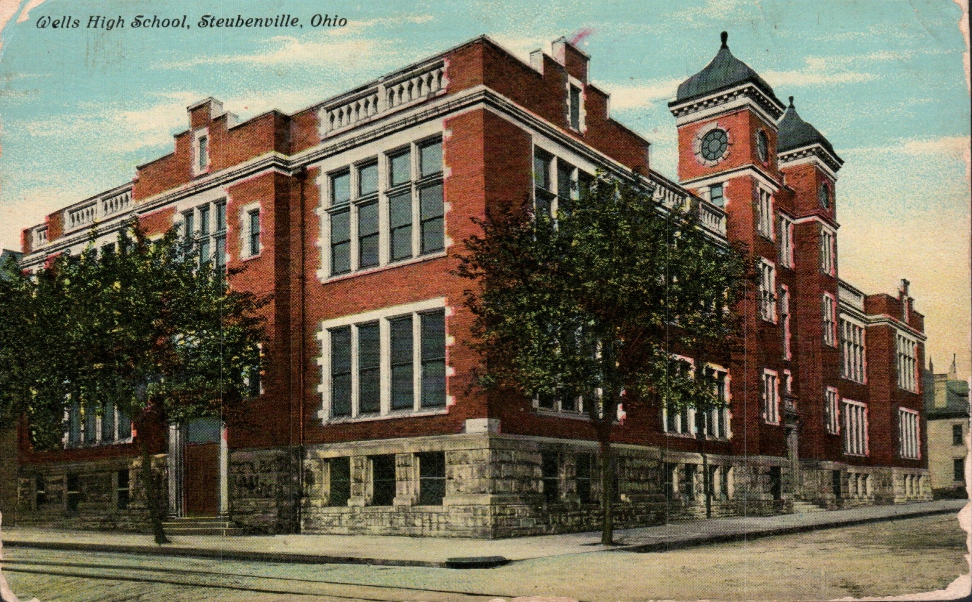 Post card: Wells High School [190?, corner damage]; Soldiers and Sailors Monument [1912]