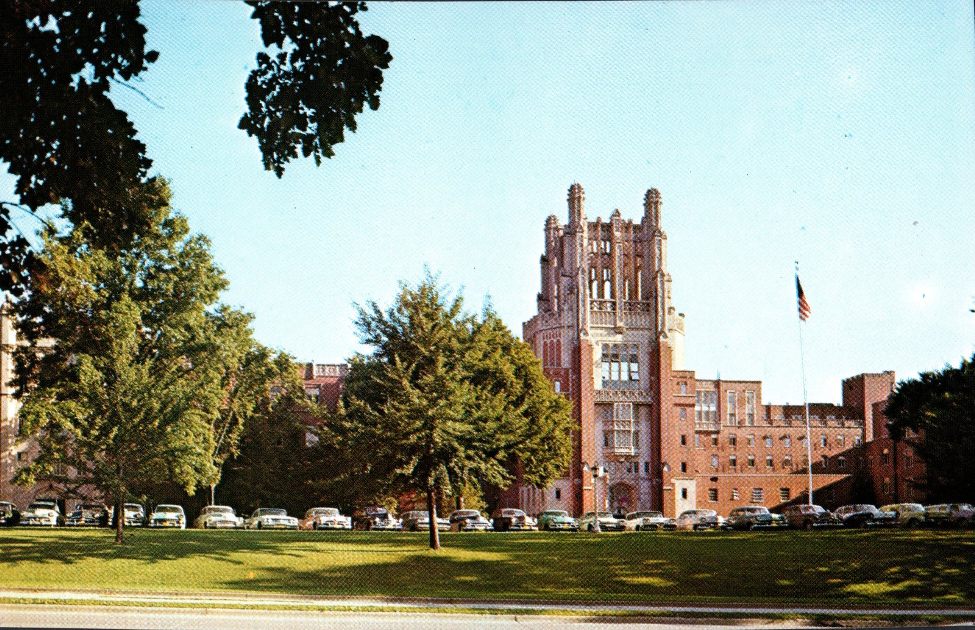 Post cards: University of Iowa buildings [all chrome]: Communication Center; Memorial Union; Library; Hospital; Art Museum; Daum Hall; Burge Hall (2); Danforth Chapel