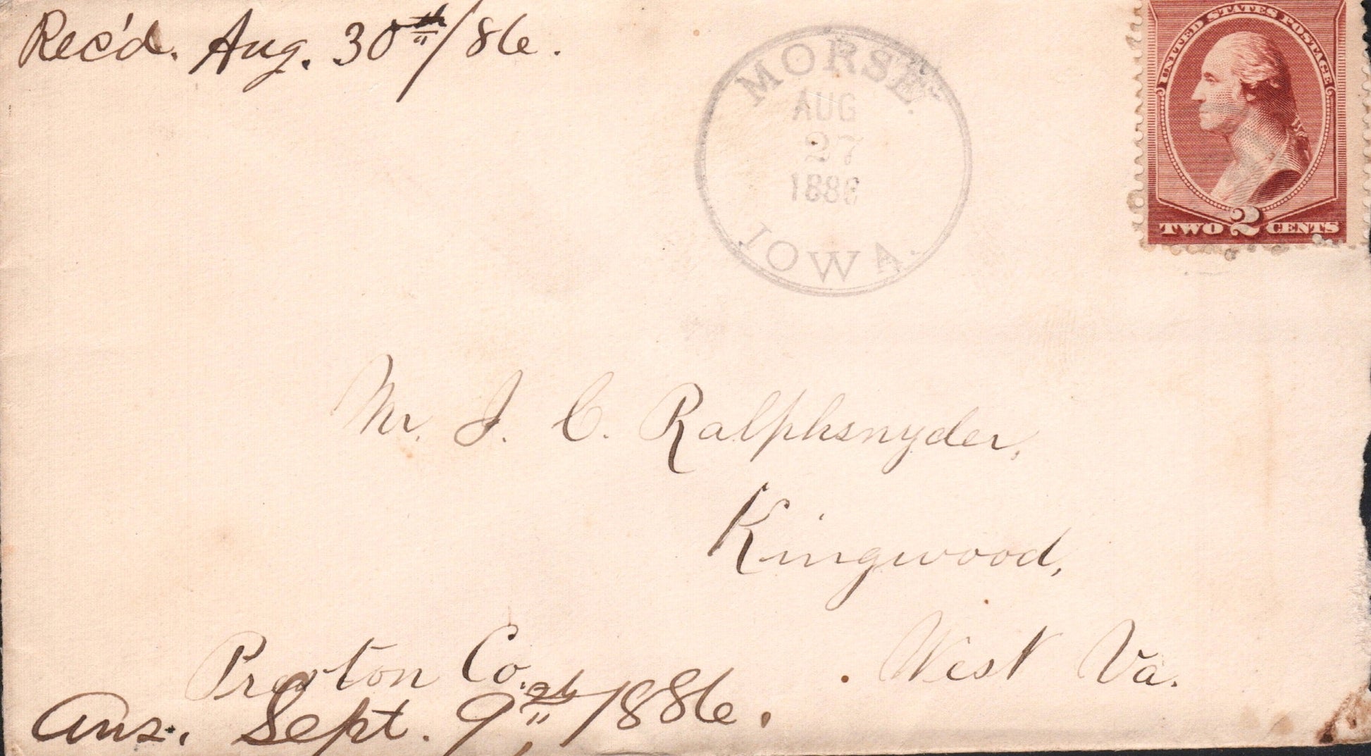 Monroe (1871-1948) 1888 cds on cover; c.1910 4-bar on post card