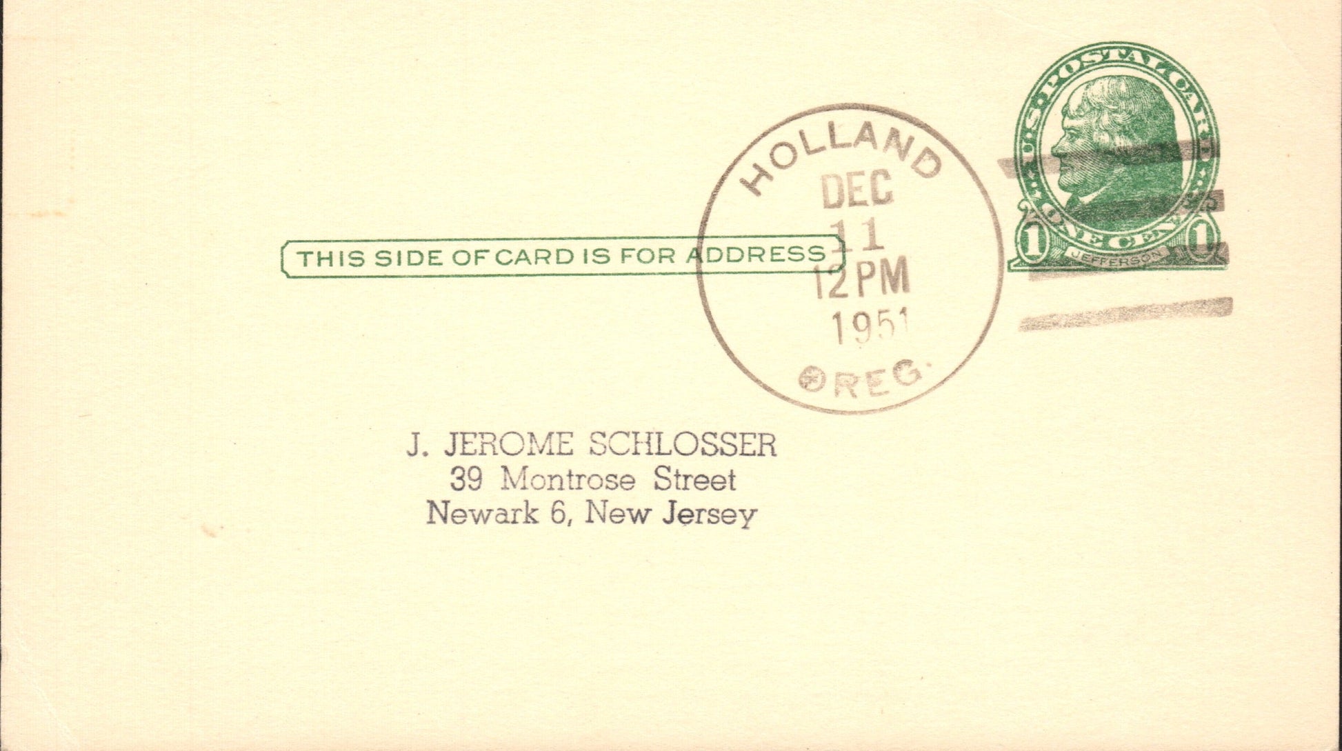 - Holland (1899-1958) 1951 4-bar on Postal Card