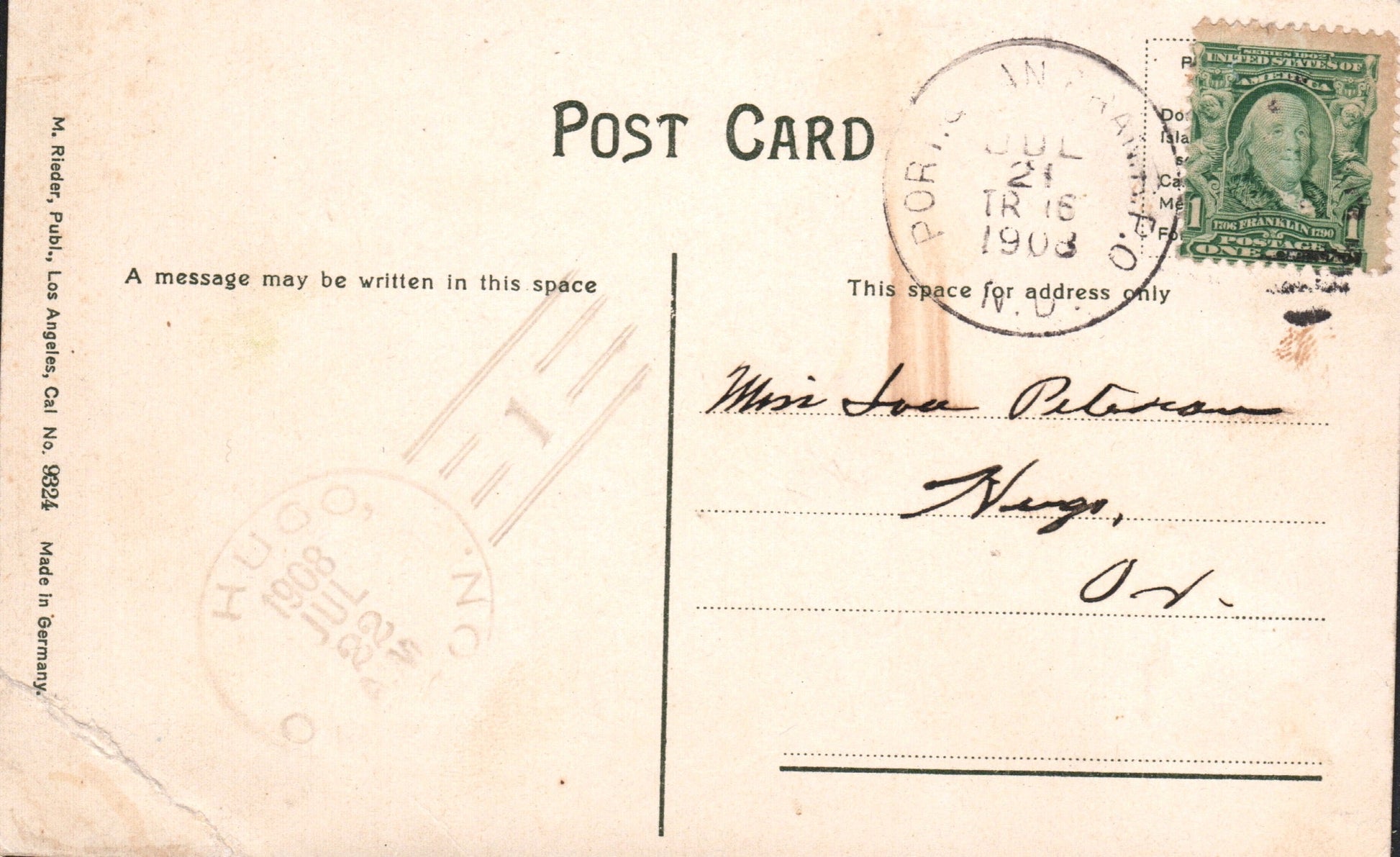 - Hugo (1896-1956) 1908 Doane 1 as rec’g mark on postcard; 1911 Doane on cover