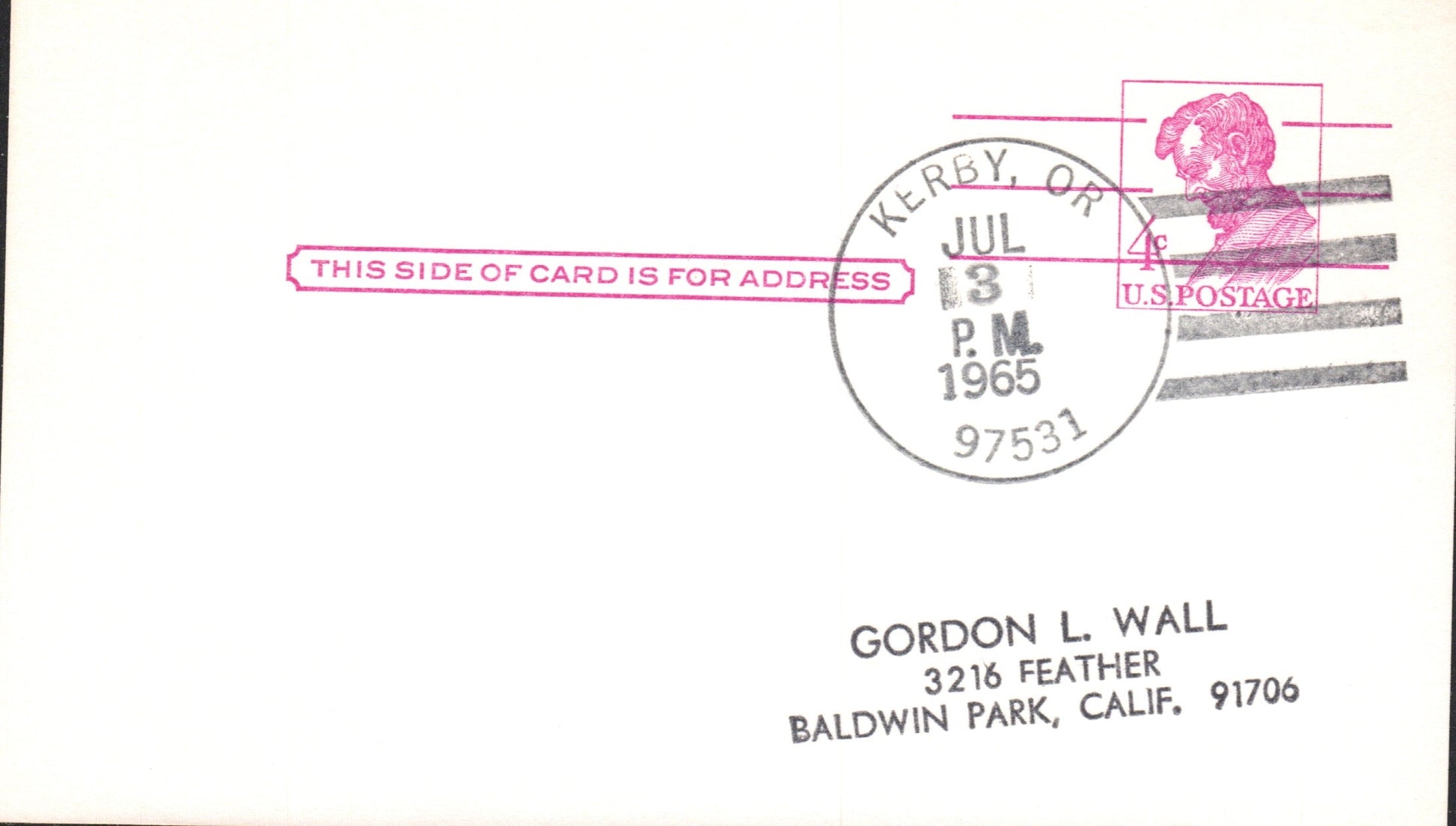 - Kerby (1856-1965) 1917 4-bar on cover; 1965 4-bar on post cards