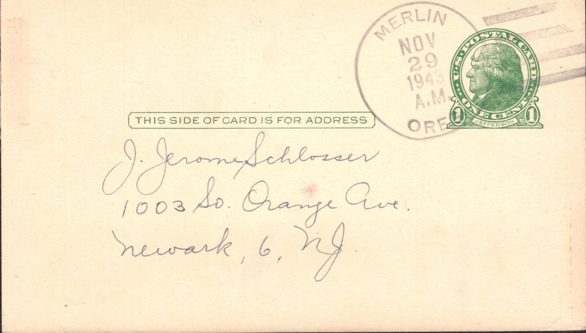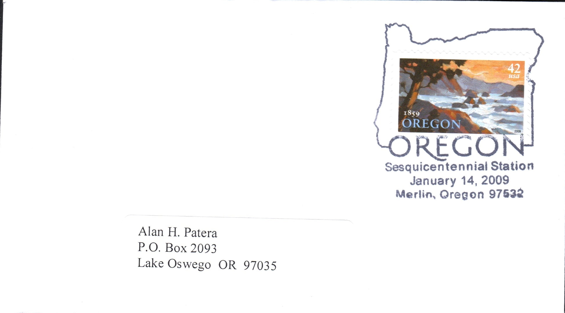 - Merlin 1932 4-bar on cover, 2¢ Washington Bicentennial; 1943 4-bar on Postal Card; 1985 4-bar on cover; 2009 Oregon Sesquicentennial pictorial cancel on cover