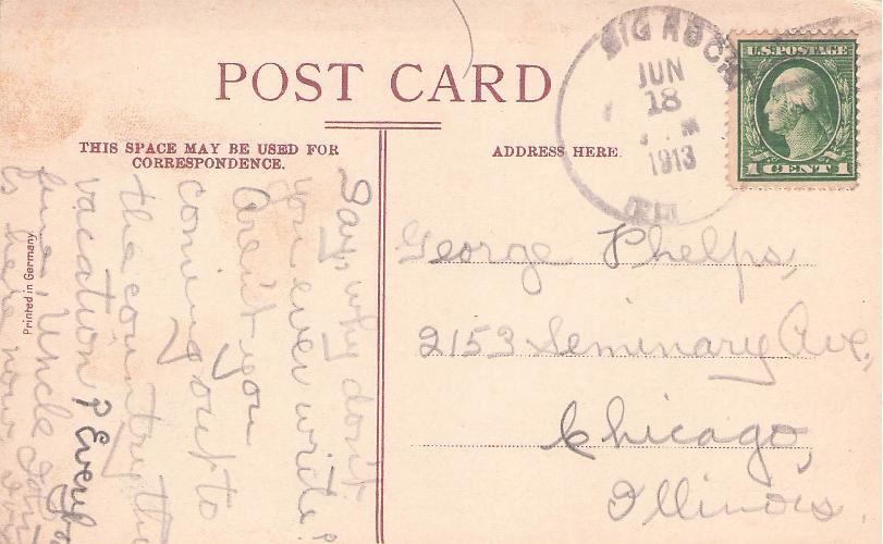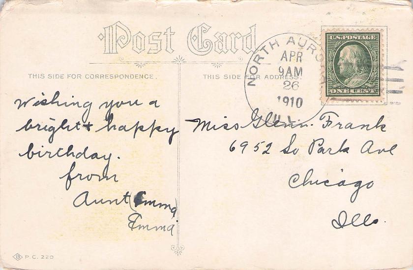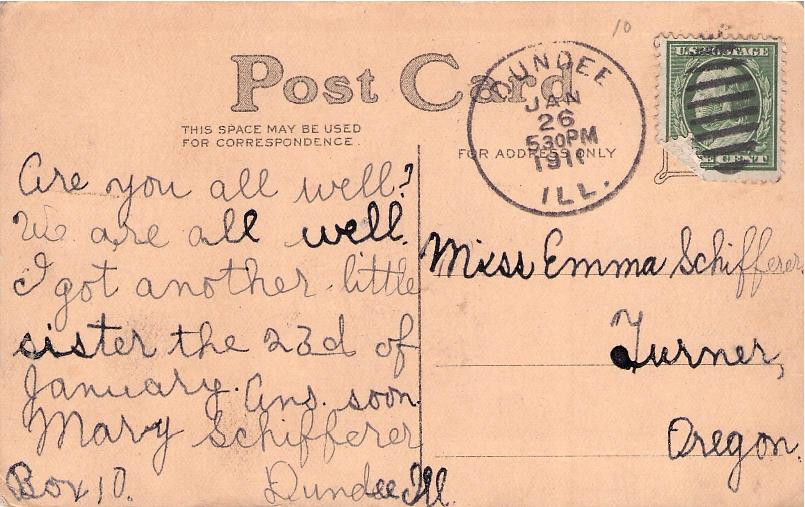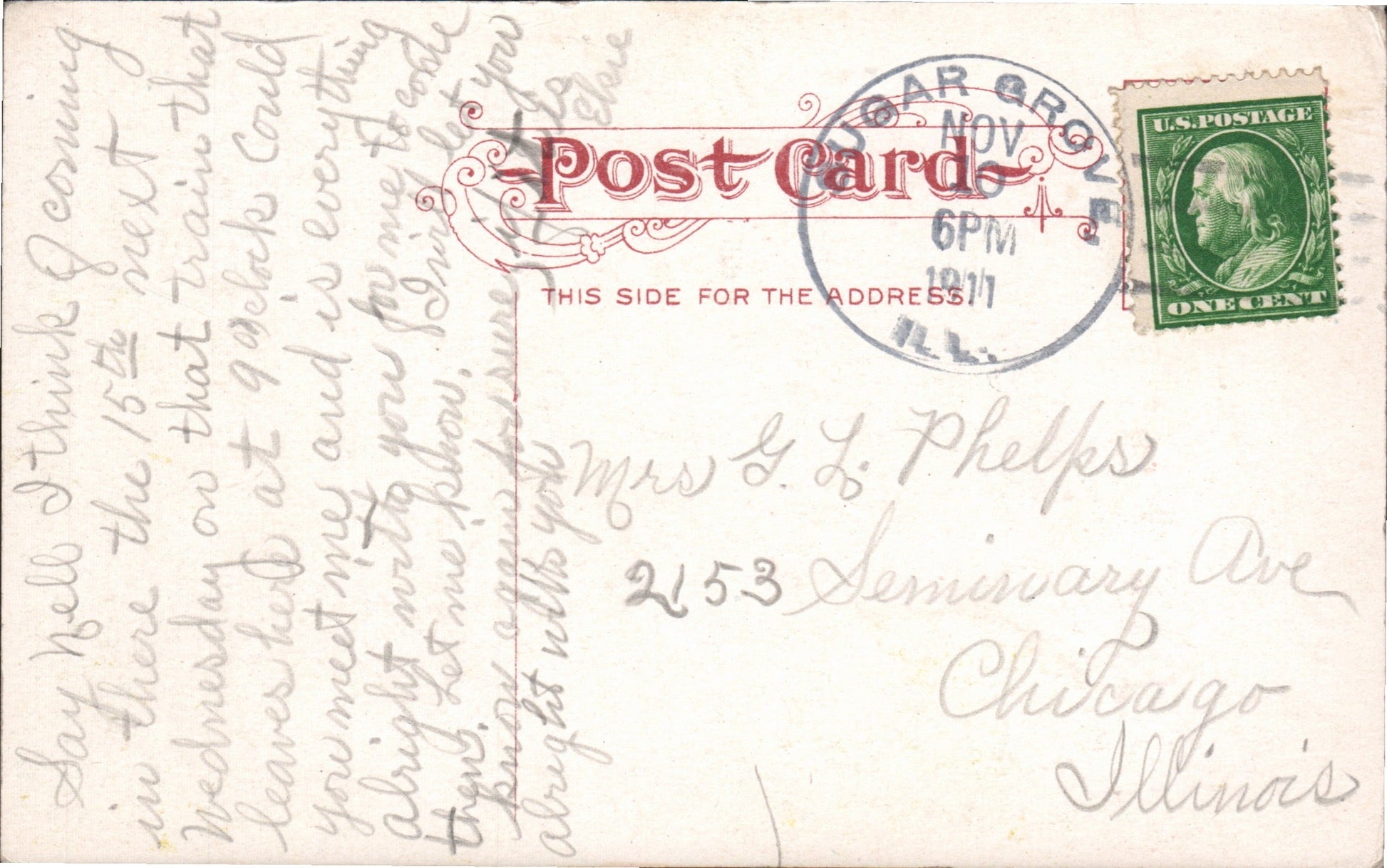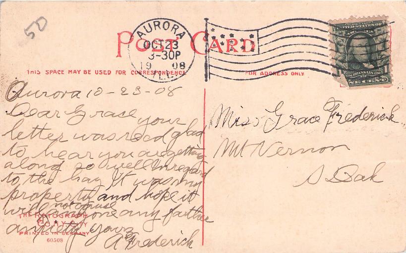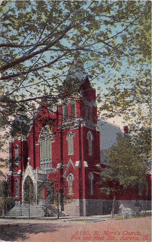 - Sugar Grove 1911 4-bar on post card [view of St. Mary’s church, Aurora]