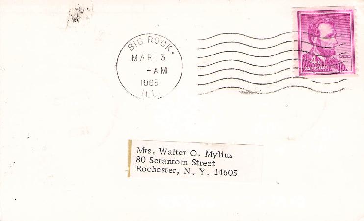 - Big Rock 1913 4-bar on post card; 1965 machine cancel on 3x5 card