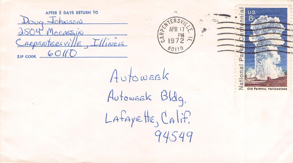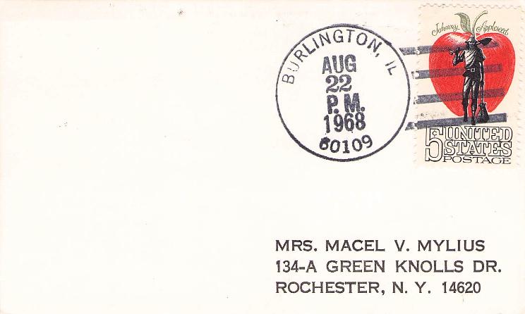 - Carpentersville 1909 duplex on post card; 1972 machine cancel on cover
