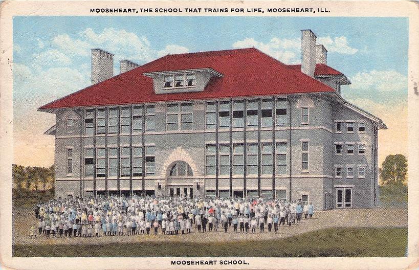 - Mooseheart Post cards: Mooseheart School and student body, “The School That Trains for Life” [1921]; Order of Moose School rotunda [linen]; Mooseheart Lake and dam [2 views, one linen, one c.1930]