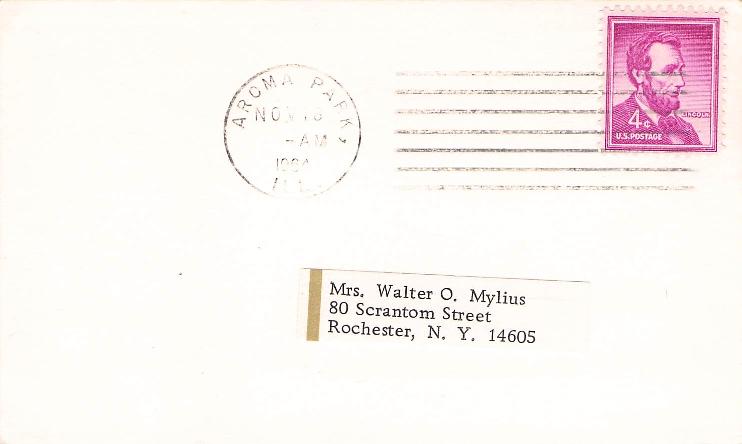 - Aroma Park 1964 machine cancel on 3x5 card