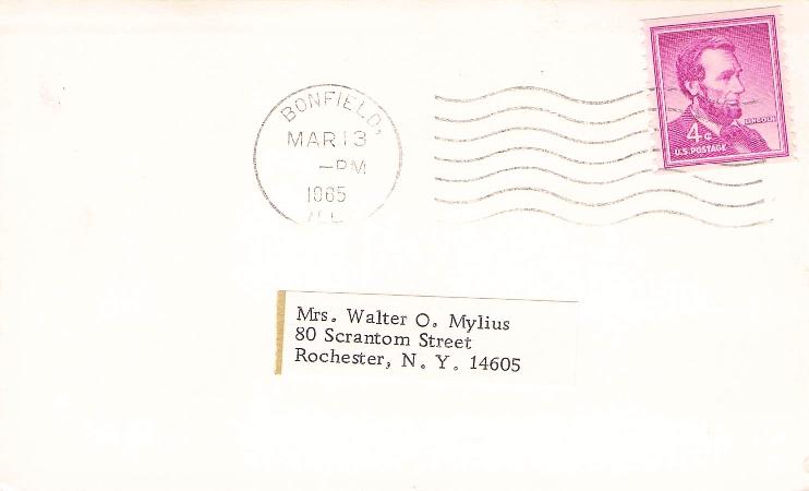 - Bonfield 1965 machine cancel on 3x5 card
