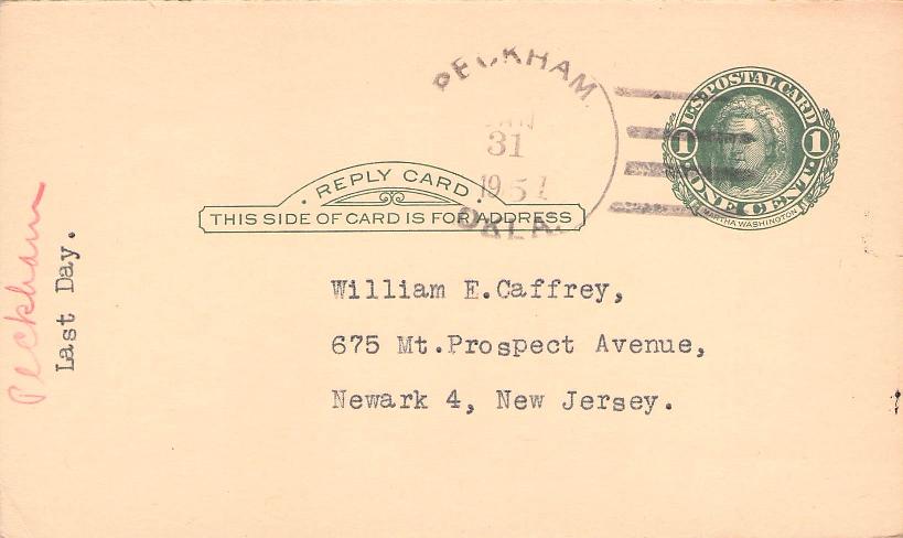 Peckham 1951 4-bar on Postal Card; same, different postmark; 1976 4-bar on cover
