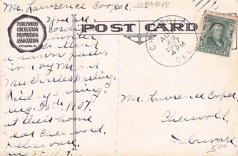 Cheswold 1907 duplex on post card