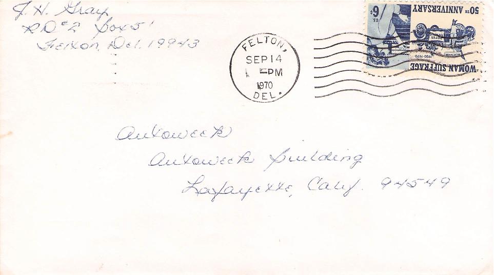 Felton 1970 machine cancel on cover
