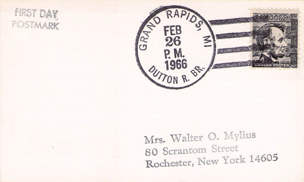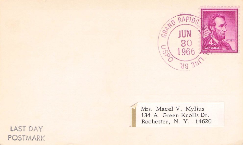 Belt Line B (1863-1966) 1966 round-dater on LD 3x5 card, better example on back