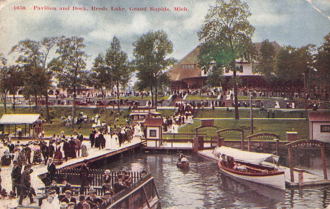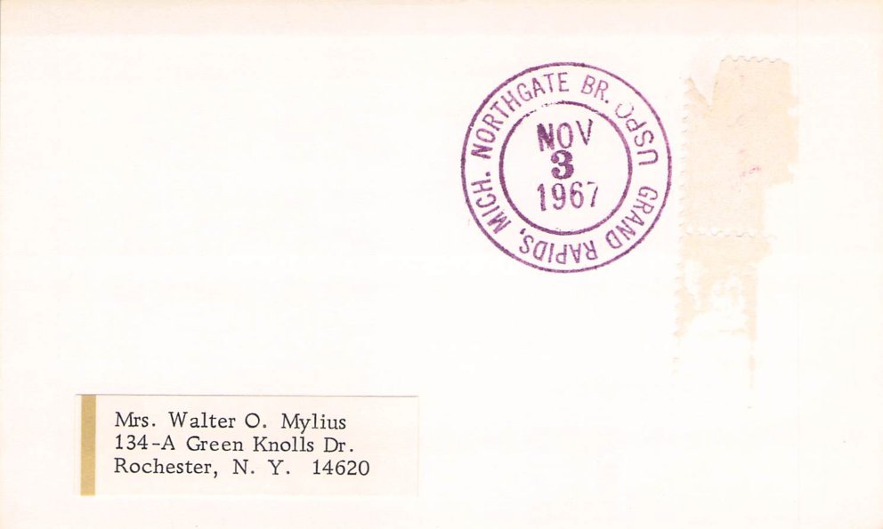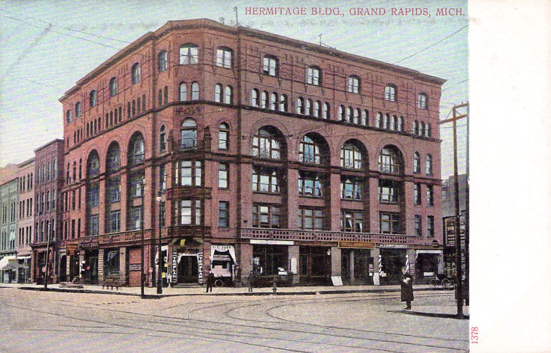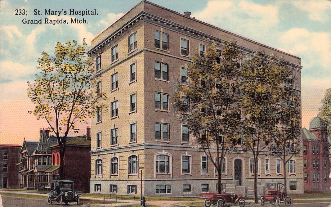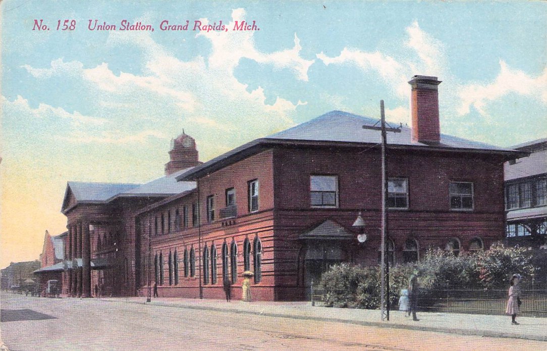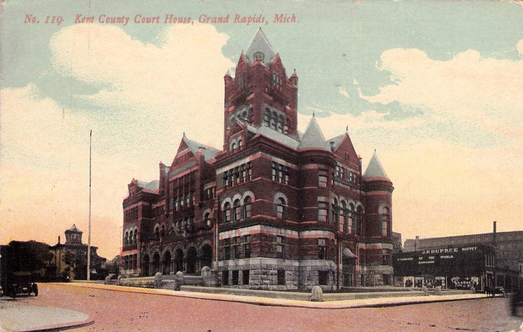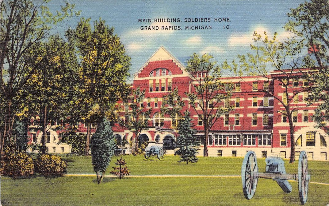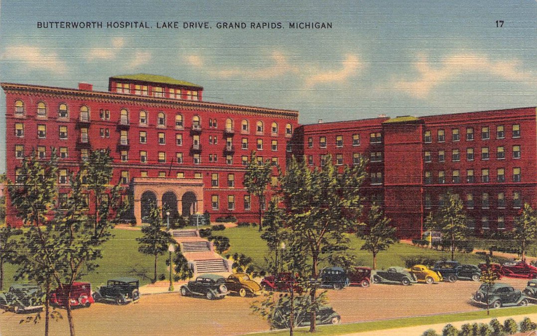 Post cards: Downtown, aerial view [linen]; Skyline, river [chrome]; Monroe Ave., bird’s-eye view [linen]; “Pearl Street Bridge Looking West” over downtown [linen]; “Monroe Avenue East from Campau Square” [1931 - Bakersfield Cal. rec’g mark on front]; Monument Park and street scene [1910]; Hermitage Building [c.1910]; Morton Hotel [B&W]; Pantlind Hotel [2 views, one linen, one chrome]; Butterworth Hospital [linen]; St. Mary’s Hospital [1917]; Post Office [c.1940]; Union Station [c.1910]; Kent County Court House[c.1910]; City Hall [1914]; Ryerson Library [1910]; Museum [2 views, one linen, one chrome]; Masonic Temple [linen]; Masonic Home [c.1910]; Main Building, Soldiers’ Home [linen]; “Michigan Veterans’ Facility - R.V. Gay Memorial Bldg.” (B&W); High School (B&W) [1906]; Calvin College [2 views, one linen, one chrome]; Fox Residence [1914]; Pavilion and Dock, Reeds Lake [1910]; John Hall Park [c.1910]; “A View on Grand River” [1911]